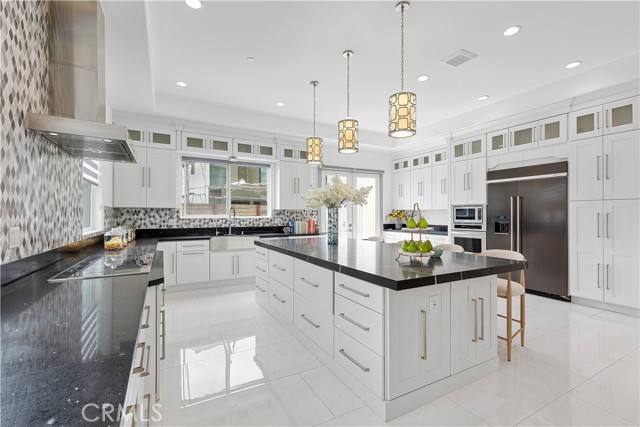Welcome to 7702 Alberta Dr., a custom-built luxury retreat on a prime corner lot in Huntington Beach, offering approximately 4,300 sq ft of thoughtfully designed living space with no HOA. Built in 2019 as a personal vision for retirement, this home features five master suites—including ensuite bedrooms on the first floor and a fully permitted Junior ADU upstairs with its own private entrance—plus 5.5 bathrooms and two steam rooms for spa-like relaxation. Artistic finishes and premium materials elevate every detail, from the $12,000 artisan front door to the custom staircase, kitchen, and bathrooms, each with its own unique flair. Soaring 12-foot ceilings, abundant natural light, and excellent airflow enhance the sense of space and serenity, while the oversized three-car garage offers ample room for vehicles, storage, or a workshop. With a solar lease of approximately $250/month, this home blends energy efficiency with high-end comfort. It’s a masterpiece of care, creativity, and quality, built to inspire and endure.