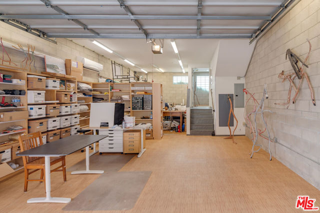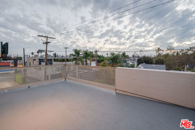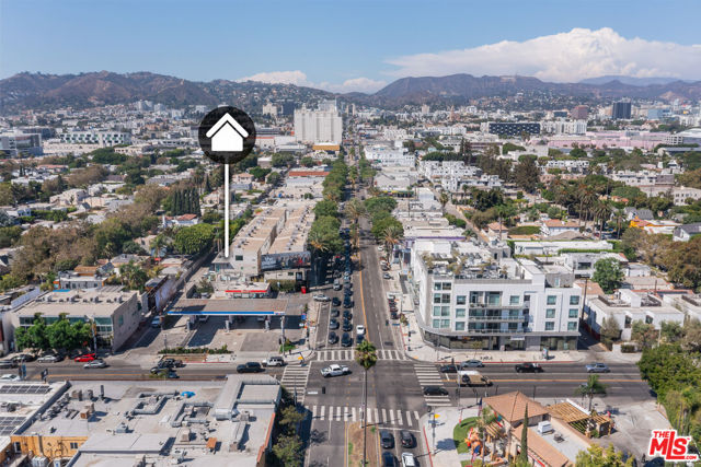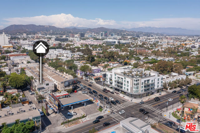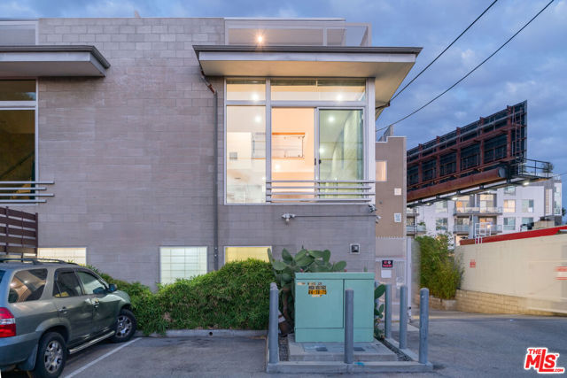 Corner live-work loft now available in one of Hollywood's few fully commercially-zoned (LAC2) condo complexes in the flourishing "Media District" just blocks from Tartine and Petit Trois and directly opposite Pizzeria Mozza on Melrose Ave. Built in 2005, the Highland Lofts are a live/work community for creative-class professionals, artists, and all who appreciate industrial architecture. All the lofts have private entrances, true open plans, soaring ceilings and large windows. This rear corner unit, one of the largest in the complex, has an ample bedroom-level terrace featuring open views west towards Century City. Two full en suite baths and a sliding translucent glass wall on the main floor below, one flight above the entry, allows for a second bedroom or private office. The 2-car garage within the lower level was designed to be flex space and is currently used entirely as a bespoke design workshop. Private entry into the unit is from a path screened from the alley by mature bamboo and a tall custom metalwork fence. Vehicles access the private garage from a gate and common driveway partially below grade. Enjoy remarkably low monthly HOA dues for a unit of this size and quality. Owners pay gas+ electric; remaining DWP costs paid by HOA.