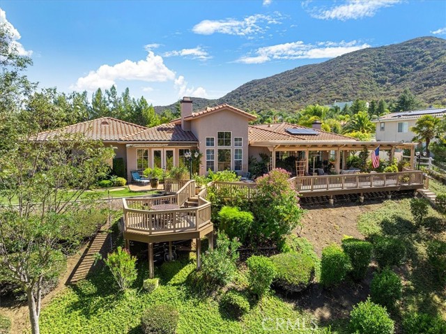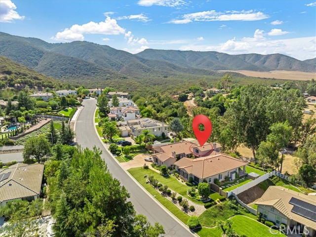 Welcome to 42926 Joshua Tree Court – where luxury, and lifestyle meet. This stunning single-story home sits on a premium lot in the highly sought-after gated community of Olive Hill Ranch Estates in Murrieta’s quiet west side. Tucked away in a peaceful cul-de-sac, the property offers incredible views of surrounding mountains and a sense of seclusion. You will enter through a lovely courtyard with an outdoor fireplace and through beautiful iron and glass double doors. Inside, you will be delighted with the open floor plan that is designed for both comfort and functionality. The heart of the home is the spacious great room with a chef’s kitchen, perfect for entertaining and everyday convenience. This well-appointed kitchen features granite countertops, stainles steel appliances, built-in fridge, a large center island, a walk-in pantry, a butler’s pantry, and insta hot water. Additional features include a formal dining rooom, living roon, den, laundry room, mud room with courtyard and garage access, and a museum-quality 3-car garage outfitted with custom cabinetry and durable coated floors. The home is also energy-efficient with 32 fully owned solar panels. The primary suite opens to its own patio where you can enjoy some quite time. The primary bath has a large soaking tub and spacious walk-in shower. One of the secondary bedrooms has a full bathroom attached. Step outside to your private backyard retreat with a large, covered patio and deck extension, dual ceiling fans, built-in misting system, fire pit, above-ground spa, built-in BBQ kitchen, and outdoor TV setup—perfect for morning coffee, summer nights, parties, and Sunday football gatherings. Outdoor enthusiasts will appreciate the nearby Santa Rosa Plateau with trails for hiking or mountain bike riding. Additionally, there is a nearby equestrian center to board your horse or keep in on your property in the expansive lower area. Good times are to be had at nearby Old Town Murrieta and Temecula’s world-class wineries. This home is more than just a place to live—it’s a lifestyle. Come see for yourself why 42926 Joshua Tree Court is truly one of a kind.