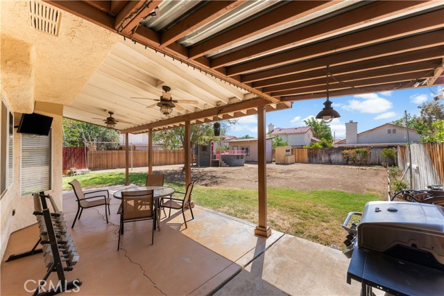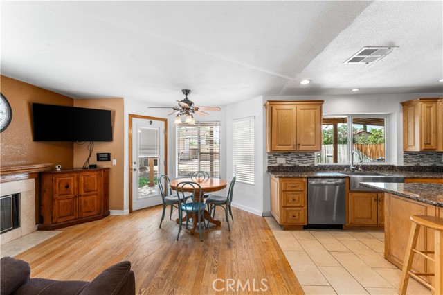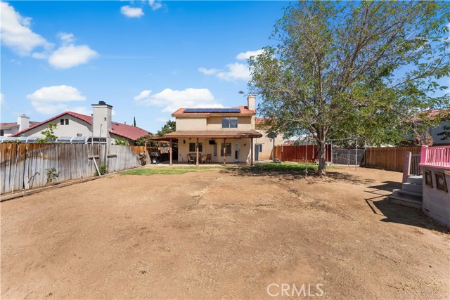 Welcome to this beautiful two-story home with paid off (SOLAR)this spacious 4-bedroom + bonus room, 3 bathroom home offering over 2,000 sq. ft. of living space tucked away on a quiet cul-de-sac. The inviting floor plan features a bedroom plus bonus room downstairs, perfect for guests or a home office. The kitchen features granite counter tops, stainless steel appliances, a farm sink, center island, backsplash, recessed lighting, and a window above the sink for the natural light. Enjoy cozy evenings by the gas fireplace, while the hardwood floors downstairs add warmth and character. Ceiling fans throughout the home provide comfort year-round. Step outside to a lush green backyard with mature trees, bushes, a covered patio, large storage sheds, and you're very own pink pirate playground perfect for entertaining or relaxing in your private retreat. The home also includes a deep driveway for extra parking but the big bonus is paid-off solar for energy efficiency. Don't miss this one schedule your showing today!