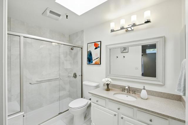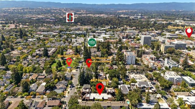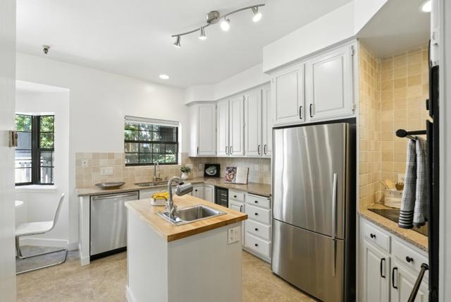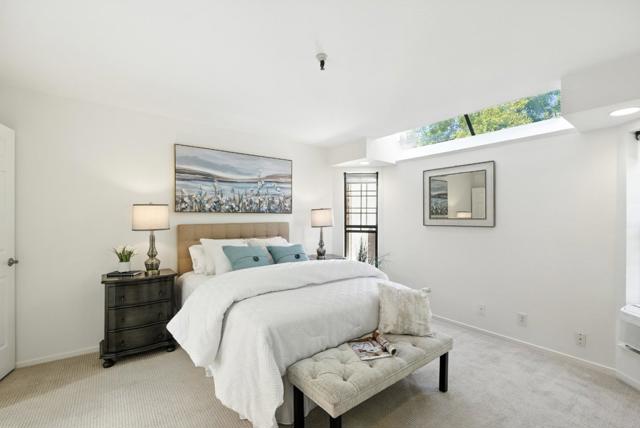 This rarely available home places you steps from everything downtown Palo Alto has to offer, including Whole Foods, parks, American Heritage Museum, renowned restaurants, Stanford University, biking trails, and Caltrain. This beautifully appointed 3-bedroom, 2.5-bath home boasts the best location in the community, featuring a private patio perfect for entertaining or unwinding after a day in town. Inside, you'll find 1,580 square feet of light-filled living space, featuring soaring ceilings, oversized skylights, and two sets of French doors that open onto a serene, landscaped courtyard. The home is thoughtfully designed with custom closet systems, durable flooring, split-unit A/C & heat, and elegant upgrades throughout, quartz countertops in the kitchen and baths, fresh paint, a wine fridge, and a sleek modern fireplace. With top-rated Palo Alto schools, ample guest parking, and a walk-to-everything lifestyle, this turnkey home offers unbeatable value in an unbeatable location.