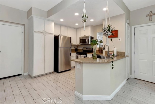 Wait, a condo with DIRECT GARAGE ACCESS that's oversized and EV-ready with room for storage? This condo understood the assignment! This charming lower-level unit sits at the end of the building and is ideal for those seeking a quieter and more peaceful living environment. The layout provides a sense of separation rarely found in attached homes and offers a very large outside patio and living space, this home lives like a private retreat. Step inside to an inviting open-concept living space, where natural light highlights recessed lighting, a gas fireplace, and neutral finishes that create a warm, airy atmosphere. The kitchen is thoughtfully updated with granite countertops, stainless steel appliances, and a gas range—a perfect setup for both everyday meals and special gatherings. Whether cooking for one or many, the space flows beautifully into the living room for seamless everyday living. Both bedrooms are located on the same level for ease and accessibility. The primary suite offers a calm and cozy escape, complete with a private en-suite bathroom featuring a dual vanity and walk-in shower. The second bedroom is perfect for guests, a home office, or a creative studio and is served by a full bathroom with a tub-shower combo. Just off the kitchen and living area, a sliding glass door opens to your own private patio, ideal for grilling, entertaining, or enjoying peaceful moments with a coffee in hand. For added convenience, the home features in-unit laundry, central heat and A/C, and a direct-access one-car garage with built-in storage and nearby guest parking—offering practicality without sacrificing comfort. Living in Portola Hills means enjoying resort-style amenities like a pool, spa, greenbelts, and direct access to miles of hiking and biking trails that weave through the surrounding canyons and nature preserves. All of this within the highly acclaimed Saddleback Valley Unified School District and just minutes to shopping, dining, and major commuter routes. Don’t miss this opportunity to live in one of Lake Forest's most peaceful and picturesque communities.