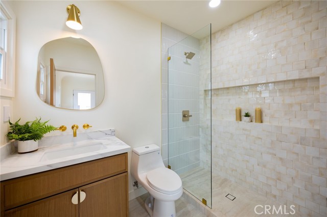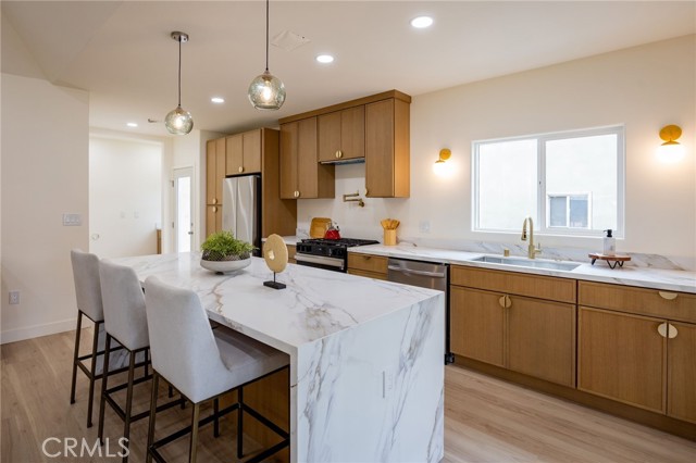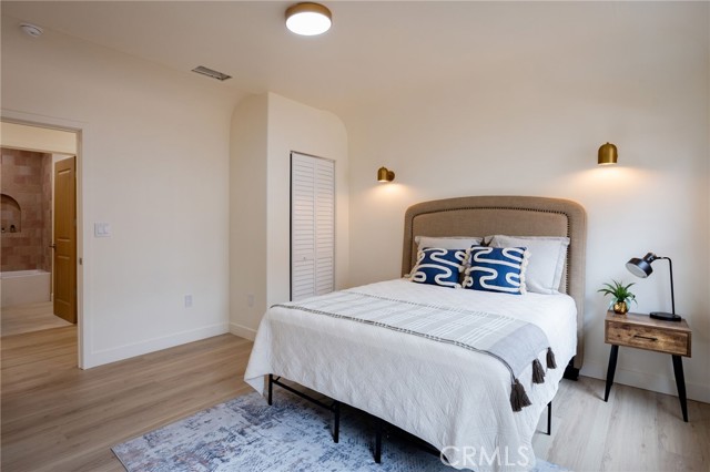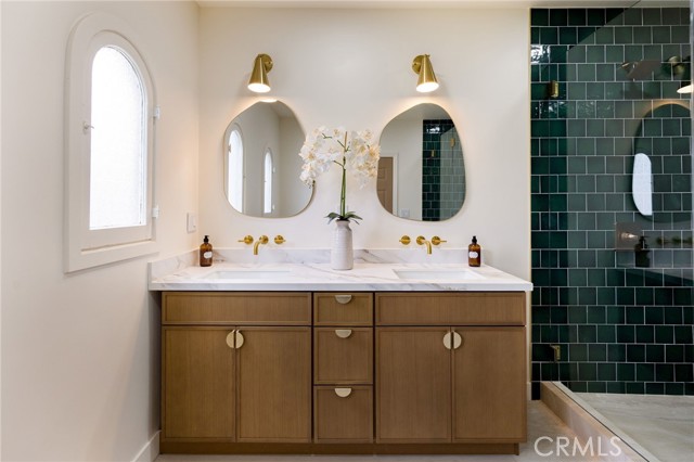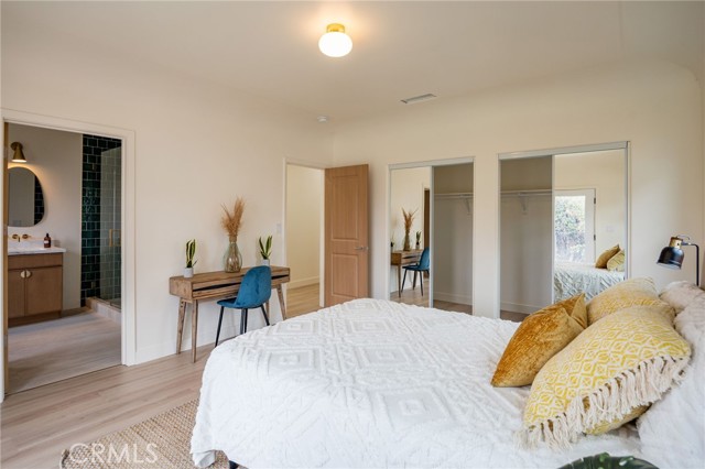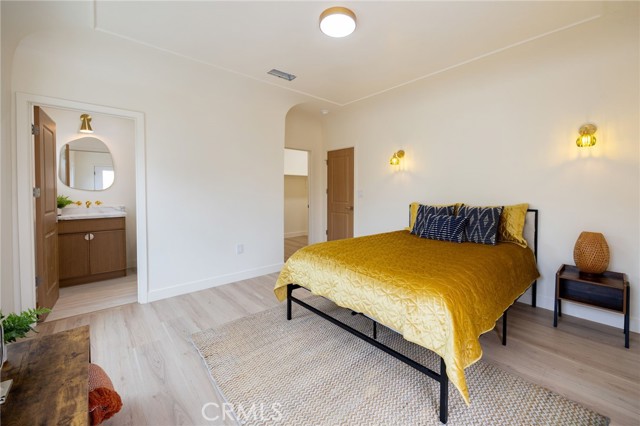 One of Kind Mediterranean gem nestled in the vibrant heart of Los Angeles. This charming three-bedroom, three-bath home invites you into a world of comfort and elegance. As you step through the front door, you’re greeted by a sun-drenched living room, where large windows frame picturesque view of the front yard. The open-concept design seamlessly connects the living area to a modern kitchen, complete with sleek countertops, and a nice sized waterfall island. Kitchen is already equipped with all new appliances ready to use for all family gatherings. Each of the three bedrooms offers a private retreat, with the master suite boasting better than a 5 star Resort! Master bedroom features a true "his and hers" on everything... 2 vanities, 2 shower faucets/space and huge closet to accommodate both, WOW! The additional bathrooms are equally elegant, featuring contemporary fixtures and ample space, one of them being the Jr Master bedroom. Outside, a tranquil backyard awaits, perfect for entertaining or simply unwinding after a long day. French doors from your primary suite that lead you out to enjoy a freshly brewed cup coffee. This property is truly equipped with all of today's necessities such as Central AC/heating and PAID OFF Solar system!. All work done with LA city permits. This home is not just a place to live, but a backdrop for creating lasting memories.