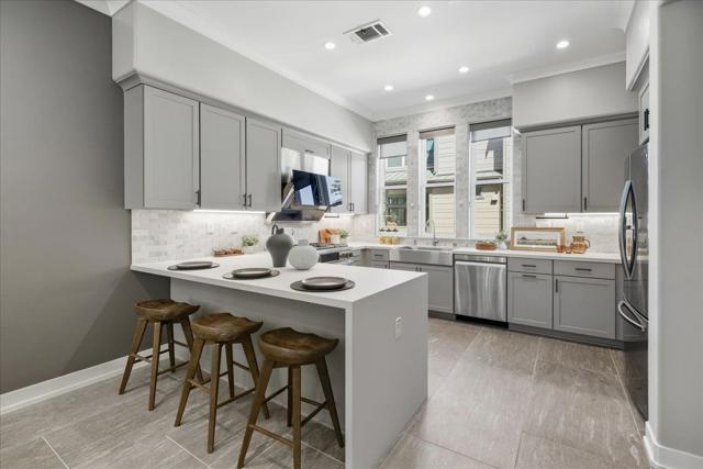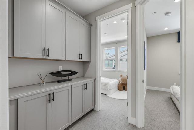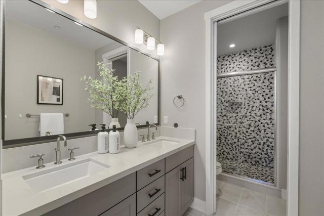 MODEL HOME in GREAT LOCATION!!! This Model Home showcases more than 100k dollars in designer selected finishes plus owner upgrades. The kitchen is an efficient U shaped layout with a gas stove and a smart range hood that makes everyday cooking easy. A built-in desk near the laundry area helps you handle work and home tasks in one place, and the dining peninsula functions for casual meals or study time. A first floor den offers a quiet space for working from home. Owned solar panels deliver long term energy efficiency. Great Location in Mountain View with quick access to major employers including Google, LinkedIn, Microsoft, NVIDIA and NASA Ames, along with nearby shopping, dining, and everyday conveniences.