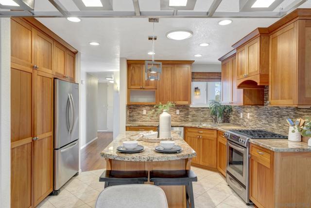 Beautifully upgraded and meticulously maintained home in the heart of Clairemont! This gem features hardwood floors, huge living room with fireplace, chef's kitchen with island, custom cherry cabinets, SS appliances and granite countertops, remodeled bathrooms, newer plumbing, upgraded electrical panel, newer H2O heater, and solar tubes throughout. Bedrooms feature new carpet, ceiling fans, and custom window treatments. Gorgeous front and back yard (back yard fully fenced) including mature vegetation and orange tree, storage shed, new patio cover, and new privacy fence and gates. Homeowners also recently added new moisture barrier in crawl space. Large 2 car garage with lots of storage. Come see the pride of ownership!
