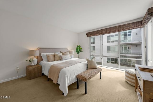 Located in the heart of Pasadena's Historic Old Town, this fabulous end-unit condominium offers the perfect blend of sophisticated elegance coupled with modern living at its best. It features an open-concept layout with an inviting flow between the living room, the dining area and the kitchen. The living room features hardwood flooring, a welcoming fireplace, a built-in entertainment center and soaring 9-foot ceilings. Floor-to-ceiling sliding glass doors open to a private balcony, filling the home with a lot of natural light. The adjacent dining and kitchen area showcases charming tree-top views as well as views of Green Street. The kitchen is both stylish and functional, with custom cabinetry, recessed lighting and a central island with a breakfast bar. The large primary suite includes a spa-like bathroom with an oversized tub, separate shower, beautiful marble finishes and huge custom closets. The second bedroom is well laid-out, complete with a built-in office nook. The condo is sold with THREE designated parking spaces (one that is a commercial space) and two good-sized storage units. Set in a highly sought-after location surrounded by shops, dining and entertainment, this condo delivers the best that Pasadena has to offer. Welcome home!