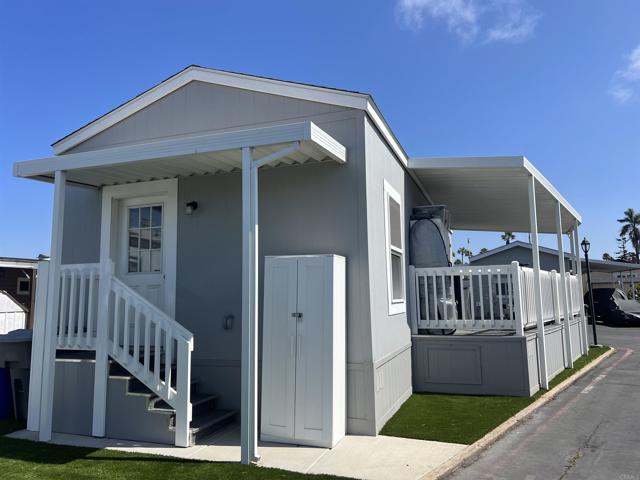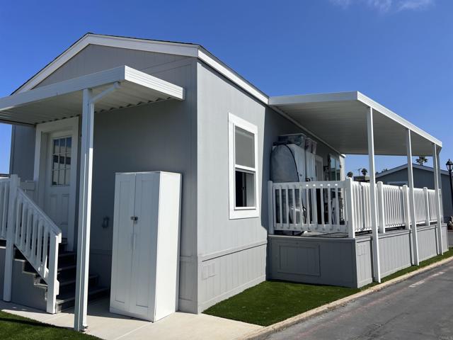 MOVE IN READY Manufactured home in Capri Lounge located near Imperial Beach. Adorable 1 bedroom and 1 bath home featuring an open and bright kitchen with Quartz countertops w/island and stainless steel appliances. Laminate flooring throughout, stackable full size washer/dryer, covered patio at entry, fully equipped for extra storage space, 5okw fast EV Charger, and low maintenance turf! Built in 2024 Just minutes away from the beach, freeway access, and restaurants!