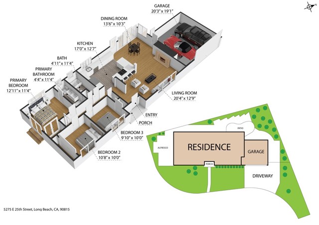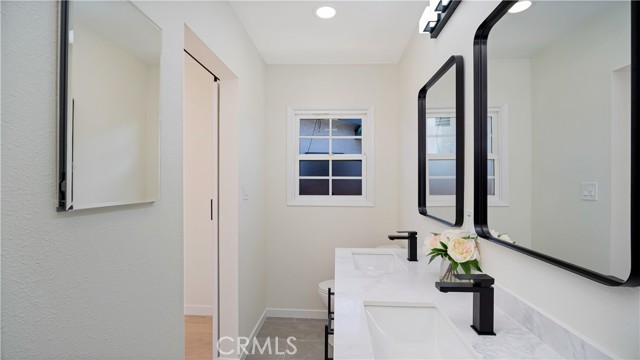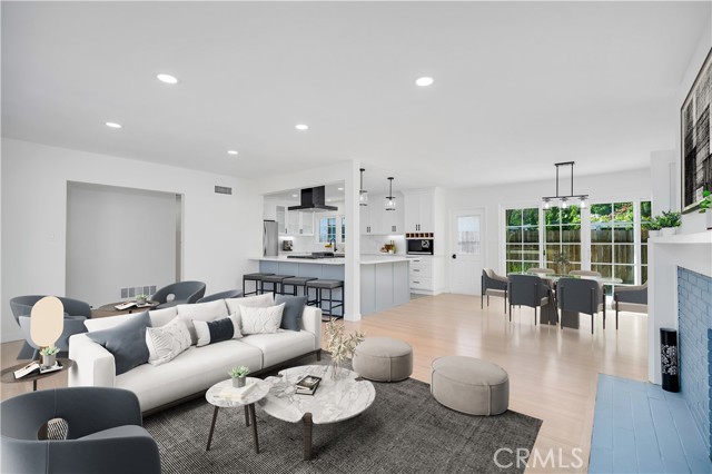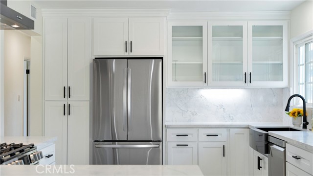 Imagine coming home to unwind in your single-level sanctuary where every detail is designed to delight and where you’re never stairs away from your primary living spaces. Step inside to a sun-washed open-plan that invites friends and family to linger: Host unforgettable gatherings around your chef-inspired kitchen with new LG-Suite of SS Appliances and its dramatic L-shaped, wrap-around island vibe, classic glassy veined quartz that steals the spotlight, and under-cabinet glow is the heartbeat of daily life and spectacular entertaining alike. Relish the perfect cabinetry amenities that include a spice rack, dual trash/recycling pull-outs, two revolving corner shelves, wine display storage and handy microwave cubby, along with upper glass display cabinets anxiously waiting your special treasures, fine china and elegant stemware. Picture weekend brunches at the bar seating as laughter fills the room, then seamless evenings by the fireplace with soft LED lighting enhances your mood. Your new home is perfectly tuned for modern living: everything inside is new, meticulously updated, and designed for effortless enjoyment—every bedroom has fresh intelligent ceiling fans, Wi-Fi connected smoke detectors, roomy closets and stylish barn doors and every switch and outlet is new. Both bathrooms have been luxuriously elevated with custom floating cabinets, matching quartz counters, mirrored medicine cabinets, shower heads and hand spray wands and humidity-controlled light/fan units, along with highly desired dual-sinks in Primary Bath. Other energy efficiencies include an efficient whole house fan and temperature-controlled solar powered attic fan. The icing on the cake includes the maximum independence of the side-by-side driveway parking for 3, spacious attached two-car garage w/ convenient direct access to the home and the gleaming freshly epoxied floors and inside laundry. Potential RV/Boat Storage too. Enjoy peace of mind with a 5-year roof warranty and a fully upgraded Heating and Air Conditioning system that keeps comfort effortless year-round. Embrace ultra-convenience with all new custom interiors that have never been lived in yet. Beyond the front door, you’ll discover a neighborhood that blends coastal easy living with urban convenience. Nearby shops and cafés, savor turnkey comfort in a community known for its friendly streets, parks, and everyday essentials all while living on an intimate less-travelled cul-de-sac that whispers “welcome home.”