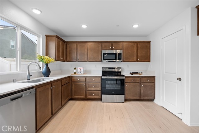This brand new home is ready for your family to move into. Great open floor plan with elegant kitchen and beautiful quartz counters, large family room to congregate with the family and build long lasting memories. Upgraded with new laminate flooring and new carpet throughout, new appliances. 3 large bedrooms 2.5 bathrooms. Atwell a Tri-pointe community with amenities includes 5 recreational centers, multiple pools, BBQ areas, landscaped trails, parks and much more for your family.