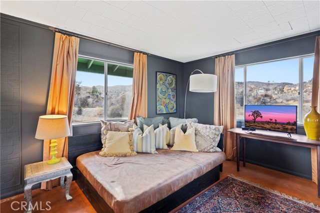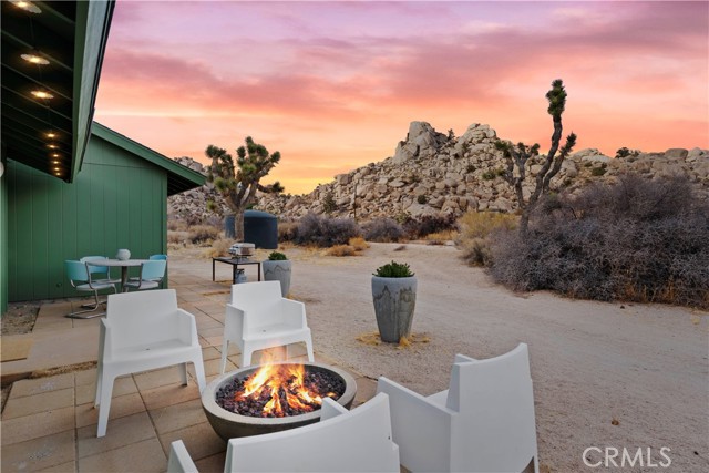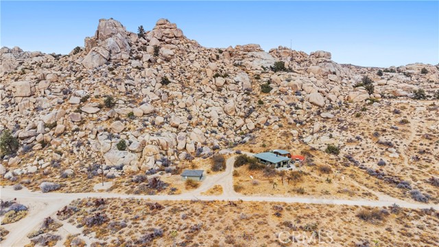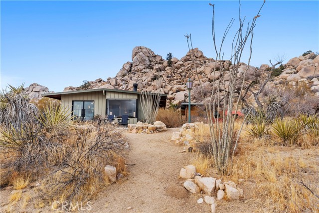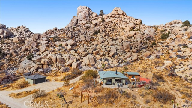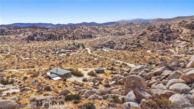RARE DESERT OASIS: 5 ACRES OF SERENITY WITH TWO HOMES AND STUNNING VIEWS Discover the unique opportunity to own your very own desert oasis, nestled on 5 acres of breathtaking land in the heart of Pioneertown’s most picturesque neighborhood, Gamma Gulch. Surrounded by majestic boulders, vibrant wildflowers, and iconic Joshua Trees, this is a truly rare property. Main home is 1 Bedroom / 1 Bath, just over 1,000 sq ft with stunning mountain and desert views from every angle. Enter this freshly painted home through its custom-made iron doors from Pinky’s. It boasts a cook’s kitchen featuring a professional Viking range, walk-in pantry, and high-end finishes. A wood-burning stove in the cozy living room allows for warmth and ambiance. The bathroom has been recently updated with modern fixtures. Savor its private garden oasis with mature landscaping and a separate entertaining patio. A studio building just outside the side door is currently used as a second bedroom. There is also a fully finished 2-car garage for convenient storage or workshop space. Second home, approximately 700 sq feet, is situated at the opposite end of the property for privacy and seclusion and has an open concept layout with full bath and kitchenette, exterior just repainted. Main house has private well, cabin has own 2400 gallon water tank with new digital pump. Both homes have been successful short-term rentals in past—buyer to confirm current permitting and usage. With views stretching all the way to Joshua Tree National Park, the Santa Rosa Mountains above Palm Desert, and the snow-capped peaks of San Jacinto, this serene location offers unparalleled natural beauty and tranquility. A short 20-minute drive to Yucca Valley and only 15 minutes to iconic Pappy & Harriet’s. Secluded yet accessible, just 7-8 minutes down a well-maintained dirt road. With its two fully remodeled homes, expansive land, and unmatched privacy, this is a rare gem that will not last long. Furnishings negotiable with exceptions. Additional 4.6 acre parcel available for separate purchase.