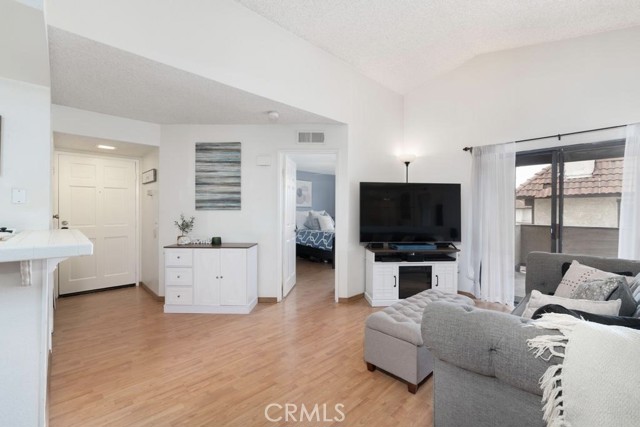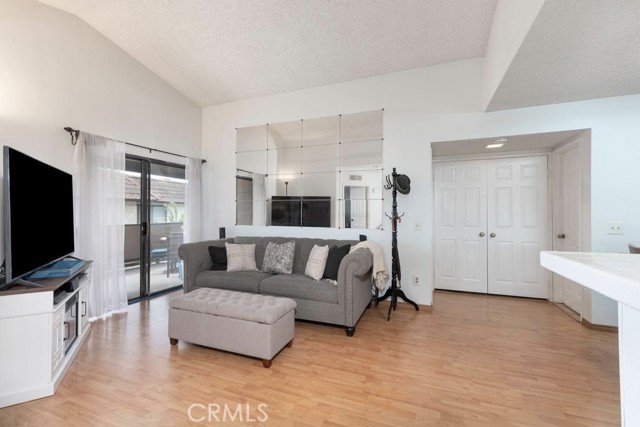 Welcome to this beautiful 2 bed 2 bath second floor condo nestled in the heart of Garden Grove, located in the serene, gated community of Flower Tree Villa. This charming home features vaulted ceilings, stylish laminate flooring, and a spacious layout that includes an in unit washer and dryer for added convenience. Enjoy year round comfort with central AC and heat, and unwind on the large private balcony that fills the home with natural light and welcomes in a refreshing breeze. The condo also includes a 2 car detached garage and offers a peaceful, tree lined setting while being just minutes from shopping, dining, and entertainment. Don’t miss this perfect blend of comfort, charm, and convenience!