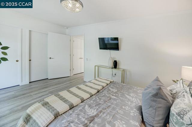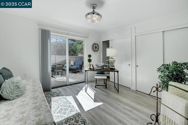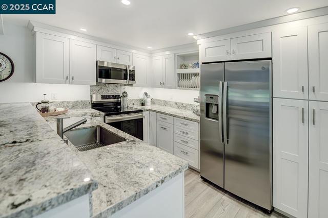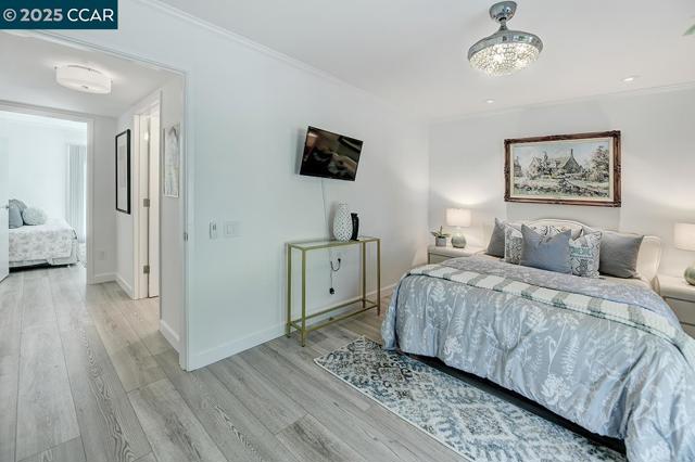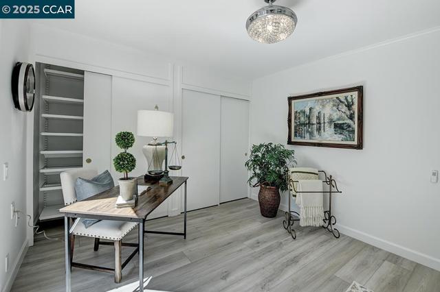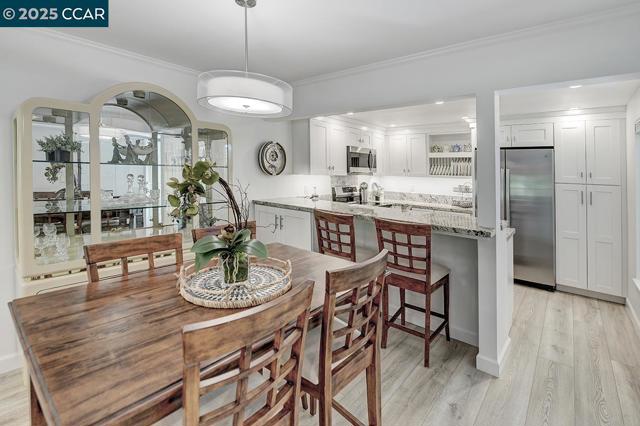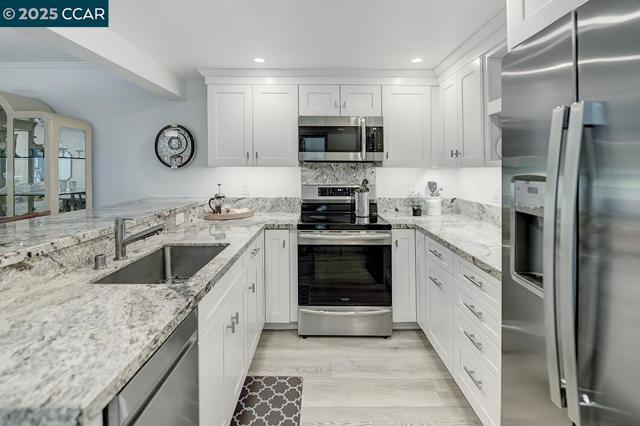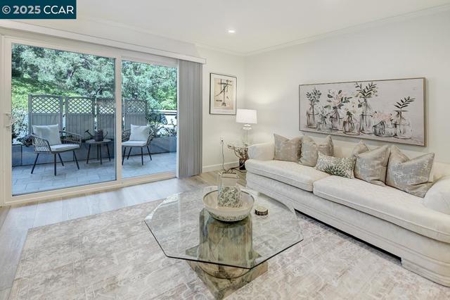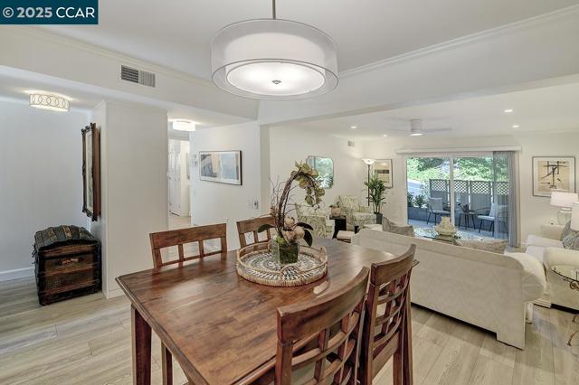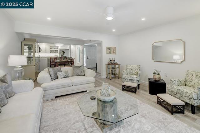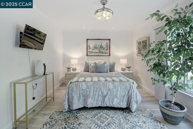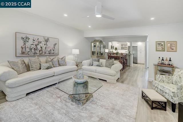 Stunning Level-In (no steps) Full Manor Renovation! Experience luxury living in beautifully remodeled Carmel model end-unit by Gregory R. Brown Custom Builders. Located in a serene setting w/front & rear patios and near Rossmoor’s main community centers/amenities. Front entry opens to a spacious tiled patio w/lovely maple tree and has access from dbl pane slider to front bedroom/den. Inside, enjoy vinyl wood floors, smooth ceilings, recessed lighting, crown moulding and double pane windows w/custom window treatments. Elegant bathroom features custom tiled stall shower, stacked Bosch washer/ventless dryer (w/plumbed drainage), and linen closet. Both bedrooms include full-wall designer closet "Elfa-organizers" and beautiful crystal light fixtures w/hidden ceiling fans. Chef’s kitchen boasts granite countertops, SS appliances includes induction cooktop, side-by-side stainless refrigerator, custom cabinetry, recycle/trash drawer, built in microwave, and dishwasher. Steps to covered carport #4 w/storage closet, this gem is ready to be yours! Home is located in the prestigious 55+ Rossmoor gated community, this home provides access to an array of luxurious amenities and a vibrant social scene, fitness cntr., trails, 5 community centers, game/hobby rms, 200+ clubs & organizations.