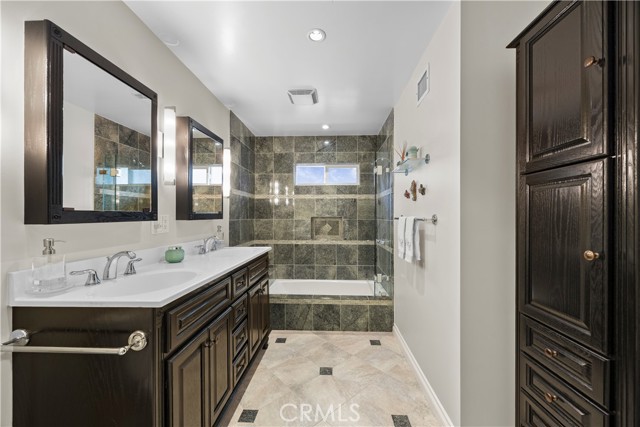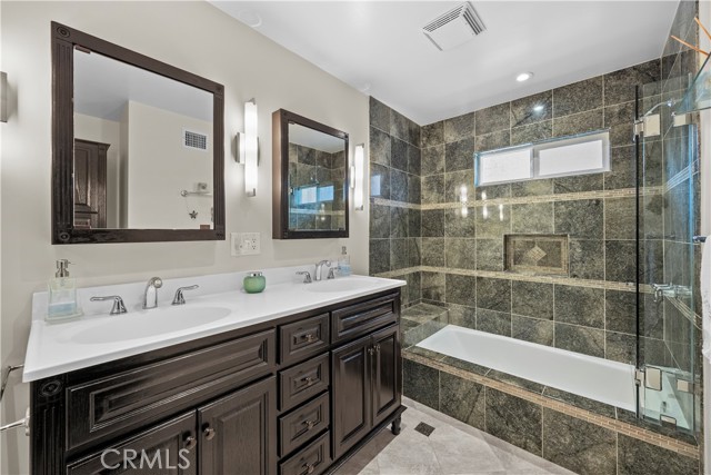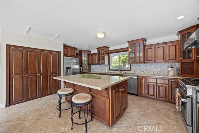 WOW!! Welcome to your dream home! This is more than a remodel, its a home where quality and comfort meet in one of Whittier's desirable Mar Vista Heights area. As you drive up you'll notice the great curb appeal and tasteful landscape along with lovely flower window boxes. Through the front door, the spacious living room welcomes you with open arms and features a stone faced fireplace, shelving on both sides, recessed lighting, newer windows and french doors to access the backyard. The heart of the home is in the generous sized chefs kitchen equipped with top of the line appliances & fixtures, custom cabinetry, quartz countertops, large island for culinary enthusiasts and dining area that easily accommodates large gatherings, newer sliding doors to access the back patio/yard. Spacious bedrooms with ample closet space. Gorgeous, show-stopping remodeled full bathroom with designer tile, sleek fixtures, warm lighting, and custom wood vanities that reflect the quality finishes throughout. Laminate flooring, recessed lighting, newer windows , sliding and french doors. Detached garage has a partitioned work shop/hobby or office space, including a pull down ladder to access lots of storage area. This large lot provides opportunities to expand the current home or even build an ADU. Don't miss out on making this beautiful place your home! Conveniently located near schools, parks, shopping and public transportation.