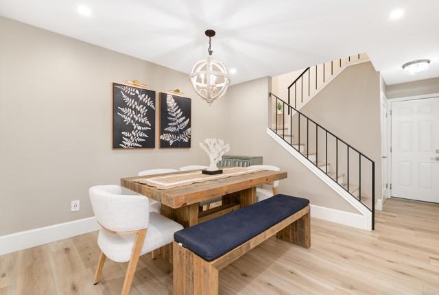 Incredible Opportunity in Coral Cove, Carmel Valley! Welcome to this beautifully updated 3-bedroom, 2.5-bath home in the highly sought-after Coral Cove community. Perfectly situated in a prime location, this property has been thoughtfully upgraded from top to bottom. Inside, recent improvements include sleek single-panel shaker interior doors, new hardware, modern window blinds, and ceiling fans in every bedroom. The first floor was fully remodeled in November 2024 with a chef’s kitchen showcasing custom cabinetry, quartzite countertops, a large island with storage, two pantries with sliding drawers, premium appliances, an onyx tile backsplash, and under-cabinet lighting. The living room shines with a redesigned fireplace wrapped in porcelain tile, a new gas insert with doors, mounted TV, and an oversized ceiling fan. Additional first-floor highlights include luxury 7-inch vinyl plank flooring, fresh paint, wide baseboards, updated plumbing, recessed lighting, and a stunning new powder bath with custom finishes. The primary suite offers a refreshed bathroom featuring a new vanity, quartz countertop, faucet, mirror, hardware, shower set, and folding glass shower doors. Upstairs, you’ll find luxury hardwood flooring, built-in cabinetry. The hall bath has been upgraded with a new vanity, quartz countertop, mirror, hardware, glass shower door, and an energy-efficient toilet. There is a NEMA 10-30 outlet in the garage as well that is ready for EV charging. Other recent upgrades include dual-pane windows and sliders, a newer 50-gallon water heater, and upgraded patio space with oversized porcelain tile and new exterior lighting. Living in Coral Cove means enjoying resort-style amenities including a pool, spa, clubhouse, playground, and tennis/pickleball courts. A scenic walking path leads directly to Del Mar Highlands and One Paseo. With top-rated schools, shopping, dining, golf, and the beaches of Del Mar nearby—plus easy access to I-5 and Hwy 56—this home truly offers the best of Carmel Valley coastal living. Don’t miss this move-in ready gem—schedule your showing today!