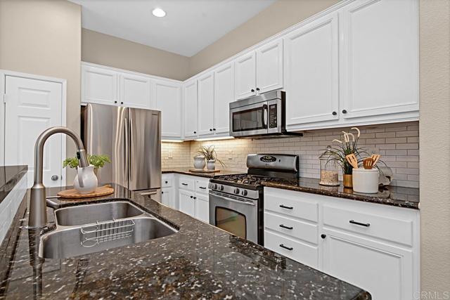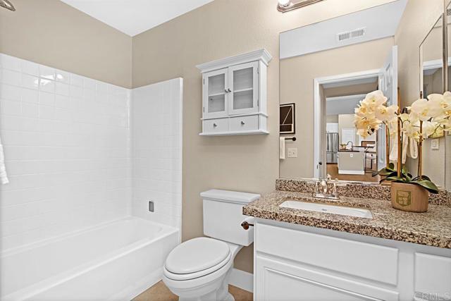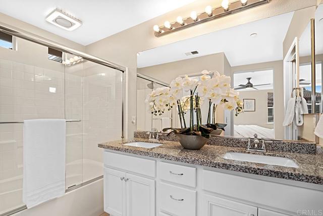NEW LISTING! SINGLE STORY LIVING: IMMACULATE MORGAN’S CORNER TOWNHOME IN SAN ELIJO HILLS. Fabulous location and gorgeous upgrades throughout! Beautiful, light-filled townhome, located right in the heart of San Elijo Hills in desirable Morgan’s Corner. Bright & open floor plan features 2 bedrooms, 2 bathrooms, open floor plan with spacious living area and private outdoor patio. There is a gated entry courtyard plus an attached 2 car garage with lots of storage. Gorgeous upgrades include newer wood floors throughout, gourmet granite kitchen w/ white cabinetry & stainless steel appliances, bathrooms with stone counter tops and tile flooring, ceiling fans and much more! The "flat" style floor plan features the entry and garage on the 1st level and the entire living space, kitchen and bedrooms/laundry on the 2nd floor, for a "single story living lifestyle". The property has central air conditioning. This is a home is not to be missed! Community pool is conveniently nearby. Close to all San Elijo Hills has to offer, including the pedestrian friendly town center with restaurants, shops, spin, plus schools, parks & more! Morgan’s Corner is located in the award winning community of SAN ELIJO HILLS, just behind La Costa, a short drive to the beach. Neighborhood includes: Desirable schools (Middle & Elementary), ballparks, soccer field, picnic tables, bbq, playgrounds, dog park, community center & all are within walking distance. Enjoy the pedestrian friendly shopping town center with grocery/drugstore/restaurants and multiple boutiques..