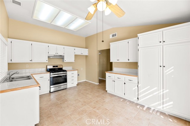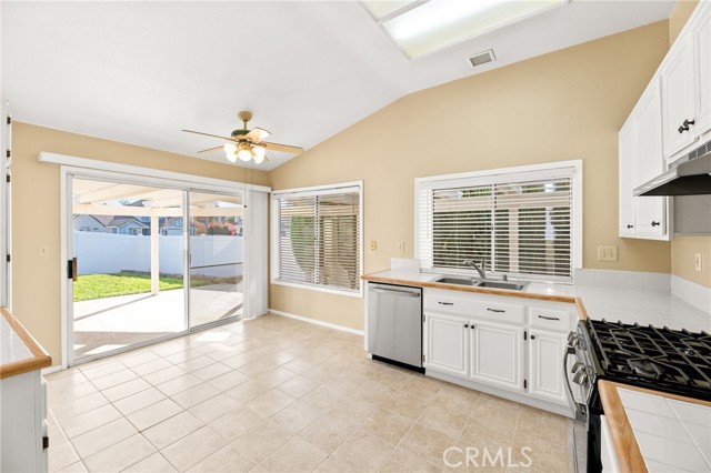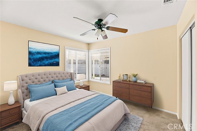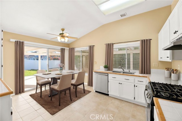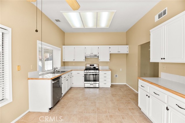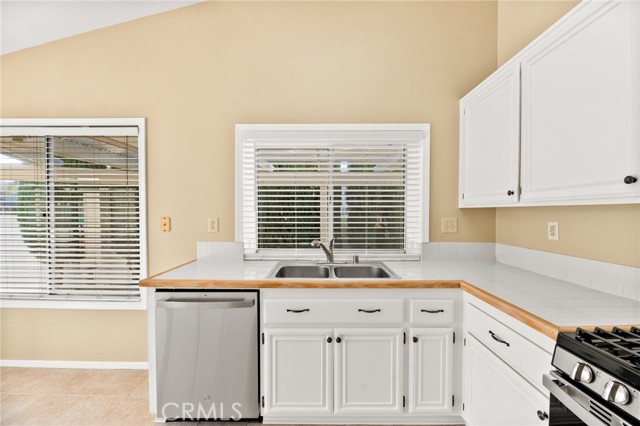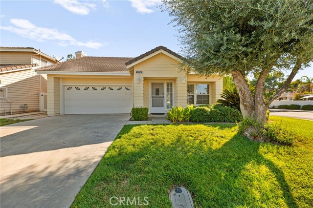 Welcome to this charming corner-lot home in the desirable Menifee Lakes community with low taxes! Pride of ownership shows throughout, with thoughtful updates and a move-in ready feel. Recent improvements include fresh interior paint, new carpet, tile flooring, and professional cleaning inside and out (including a Duct cleaning). The kitchen features freshly painted cabinets, brand-new stainless steel appliances, and opens to an additional dining space with a sliding door to the backyard. The spacious living room offers vaulted ceilings, a cozy fireplace, and direct backyard access through another sliding glass door. A formal dining area sits adjacent, ideal for gatherings. The primary suite includes a walk-in closet, dual vanity, large tub/shower combo, and private patio access. Two additional refreshed bedrooms and a full bath complete this functional floor plan. Outside, enjoy a generously sized backyard with a wraparound patio, newer vinyl fencing, and a small grass area for outdoor enjoyment. Newly painted trim and professionally cleaned windows and screens. As part of Menifee Lakes HOA, residents enjoy access to the lake, walking trails, community pool, and much more. Located less than 5 minutes from grocery stores, gas stations, elementary and middle schools, MSJC, public parks, and the local library, you'll love how everything you need is right at your fingertips.