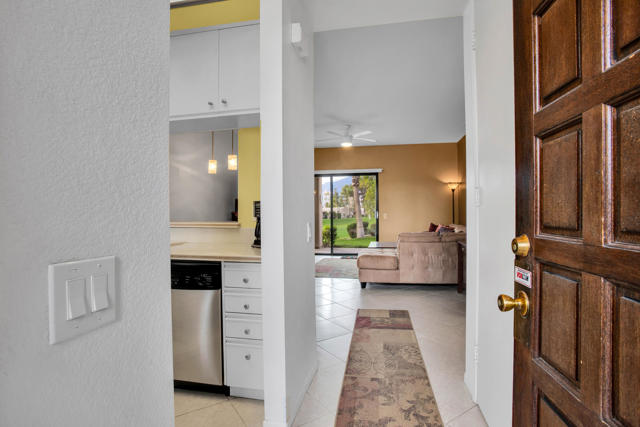 Western Mountain View you can enjoy living in this fabulous 1 bedroom, 2 full bath condo. Located at The Desert Princess Country Club! With a fabulous Western Mountain view, Close to the pool.. Updated appliances, all tile flooring! Just steps away, you can splash into the pool or unwind in the spa! Location is Fabulous and the neighbors are even better!. Extended Land Lease to 2069, a $10,000 savings to buyer! Stackable washer/dryer and single car detached garage... Would make an excellent seasonal rental... Monthly ground rent is low . The Desert Princess has an affordable 27-hole PGA Championship golf course, no Tee-time lotteries, no initiation fees, rated among the best in the valley by GOLF DIGEST. This quiet community is away from the noise yet minutes from everything that is in Palm Springs; restaurants, shopping, casinos, an international airport, the Tramway, Art Museums, Theaters, Acrisure Arena and the Street Fair! Easy to show