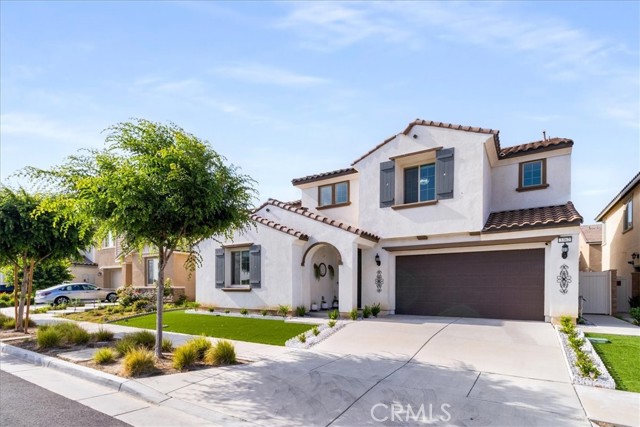 Welcome to the esteemed Ontario Ranch Community! This exquisite 5-bedroom, 4-bathroom residence spans 3,237 sqft. of luxury living and was impeccably constructed in 2021. Boasting an array of exceptional features, this remarkable home includes a main-level bedroom with an ensuite bathroom, remote control window shades, a generously sized walk-in pantry, a versatile loft room space, laundry room, solar panels, a soft water softener, pre-wired EV hookup, and spacious walk-in closets, among many others. Upon entering, you're greeted by soaring ceilings with an abundance of natural light. The open floor plan living room is perfect for family gatherings and hosting. The gourmet kitchen features contemporary amenities, including stainless steel appliances, granite countertops, and soft-close cabinets. A standout feature is the oversized walk-in pantry, ideal for keeping culinary essentials organized. Adjacent to the kitchen, a craft room offers a creative space for hobbies and projects. Plush carpet leads to the upper level, where a bonus room (loft), laundry room, generously proportioned bedrooms, and a master suite await. The master bathroom showcases dual vanities and a sprawling walk-in closet. Living room equipped with flush mounted ceiling speakers, built-in surround sound hook ups and designated TV mount area. The Kitchen overlooking the living area is chef's dream kitchen with walk-in pantry and top of the class appliances, kitchen island with breakfast nook. Electric curtains all over the house. With Solar panels and pre-wired EV (Electric Vehicle) hook up for all your future needs. Conveniently situated near shopping centers and major freeways 15 & 60, this home is also zoned for a highly rated high school. Come see this beautiful home today!