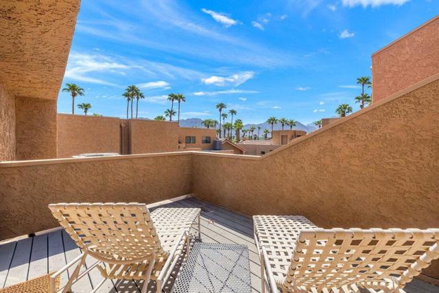 Welcome to Ironwood CC, where the epitome of luxurious living meets breathtaking natural beauty. Nestled within this prestigious community your dream home awaits--a stunning 2 bedroom, three bath condominium boasting an open and airy layout, brimming with artistic charm and modern convenience. Step inside and be greeted by a bright and spacious great room that seamlessly flows into a chef's kitchen, complete with a Viking cooktop, oven and microwave. The hand-chosen granite countertops evoke the serene beauty of a rainforest, adding a touch of elegance to your culinary experience. Enjoy privacy and tranquility in this two level residence featuring three outdoor patio areas where you can savor the stunning mountain views and lush landscapes. Whether you're seeking a primary residence or a luxurious getaway, this home caters to both with ease. Ironwood CC offers an unparalleled lifestyle with its pristine landscape, 2 golf courses, multiple tennis courts, a fitness center and a lavish clubhouse complete with a bar and restaurant. All of this, combined with 24 hour gate-guarded security and roving patrol, ensures both comfort and safety. Located in south Palm Desert minutes away from upscale shopping and fine dining on ElPaseo, cultural experiences at the McCallum Theatre, and the natural beauty of hiking, biking and walks trails as well as the LIving Desert Reserve Zoo. This property is definitely a must see!