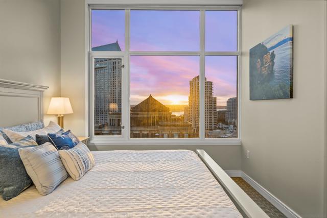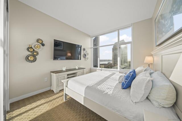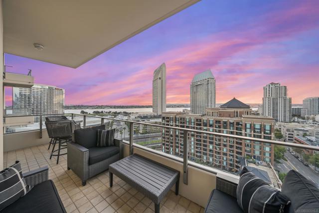Welcome to the prestigious Pinnacle 1306, a luxurious oasis nestled in the heart of the Marina District. This sought-after split floor plan boasts two large bedroom suites, a show-stopping great room with soaring 10 ft ceilings and floor-to-ceiling windows, a gourmet kitchen featuring a Sub-Zero refrigerator, wine cooler, designer finishes like Snaidero cabinetry, and a convenient powder room off the entryway. Perfectly oriented, the spacious balcony offers stunning southern and westerly panoramic views of the Harbor, Pacific Ocean, Coronado Island, and city skyline - perfect for a sunset soiree. Moments from Seaport Village, The Rady Shell, Gaslamp District, Petco Park, and vibrant Little Italy, Pinnacle offers white-glove concierge service, a world-class gym, steam and sauna facilities, a guest suite, a stylish lounge, a 95 ft lap pool + spa & more. This luxury condo has the option to be sold furnished and features two underground parking spaces + storage unit. Pinnacle 1306 is not just a home; it's a lifestyle!