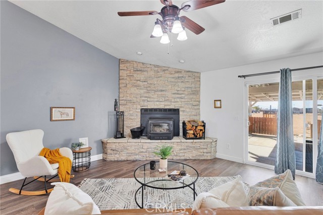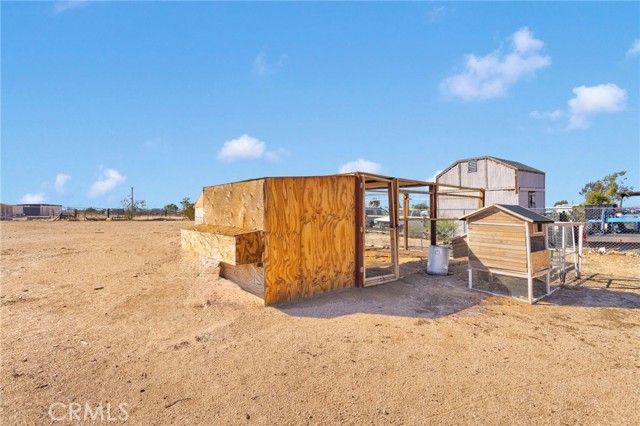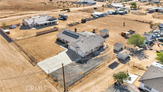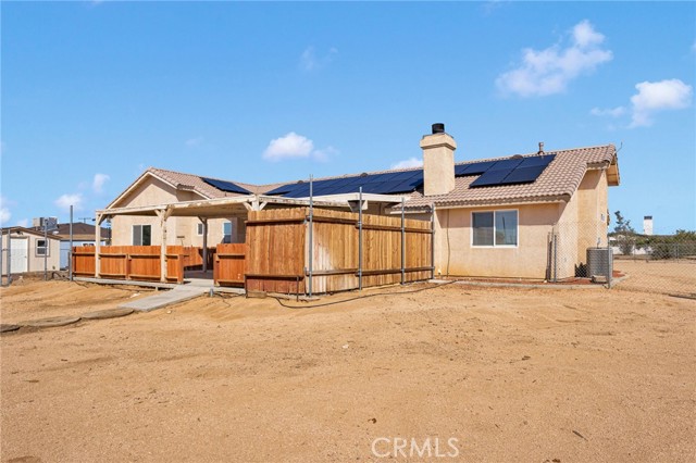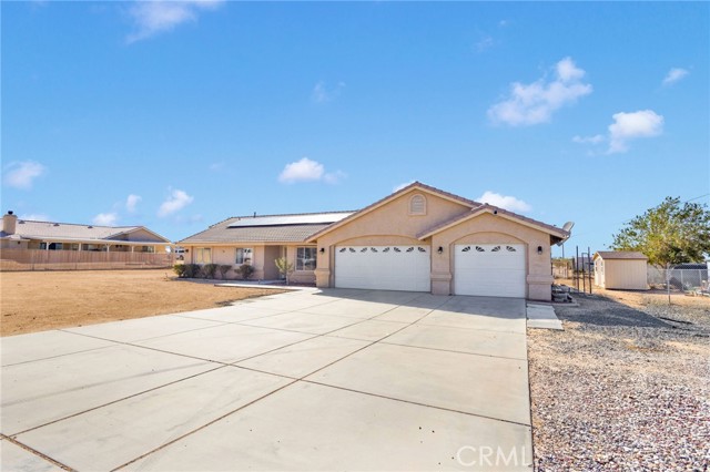 The Apple Valley home that fits all your family's needs and wants! This home comes with PAID FOR SOLAR, saving you money monthly with 49 panels and not just one, but two back up batteries! A large kitchen with newer appliances openly flows into your kitchen nook and family room that offers a wood burning stove to keep you warm on chilly desert nights! The primary suite is located off of the kitchen with a large walk in closet adjoining a bathroom finished with dual vanities and a soaking tub with a private shower! The additional three bedrooms are located on the other side of the home with a full bathroom tucked in between! The property offers a fully fenced one acre lot with a covered patio perfect for entertaining and expansion! Looking for room to work or run your home business? Additional space for guests? You'll love the fully finished secondary structure equipped with recessed lighting, flooring and a mini split! A custom built chicken coop is ready to help kickstart your dream of a family home stead alongside a fully finished storage unit to allow for ample storage! Ready to tour this home? Scroll down for contact information and call the listing agent, Emily Lamping directly!