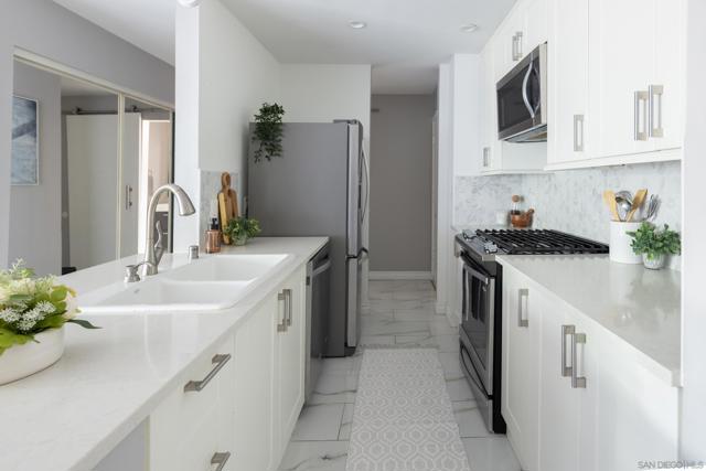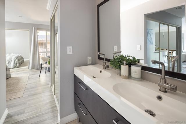 Welcome to your upgraded Mission Valley smarthome! This stylish condo combines modern living with resort-style amenities. Open floorplan features luxury upgrades throughout - updated flooring, quartz counters, custom cabinetry, stainless steel appliances, recessed lighting with dimmers. A condo designed for convenience, comfort, and efficiency that is centrally located and minutes from Mission Bay, Old Town, Downtown, beaches, shopping and dining, this is an unbeatable spot for the San Diego lifestyle. Perfect as a first home, vacation spot, or investment!