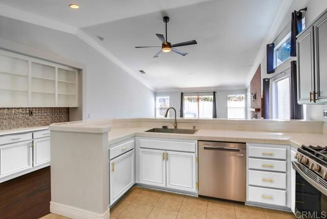 Welcome to the beautiful Lake Ranch Viejo community. Features unique only to 4965 Lake Shore Ct include **Larger Lot Size** Cul-De-Sac** and best of all #LOCATION LOCATION LOCATION!! This Gem of the neighborhood is situated on the coveted inner circle tract of lake itself. No immediate rear neighbor, the home abuts to green belt / pathway beyond back fence line. The backyard is comfortably private offering a great space to entertain and relax. Solid panel fencing provides a pet friendly area with a lush backdrop. Interior boasts an open floor plan with 3 Bedrooms and 2 Full Baths, Master ensuite and large walk in closet. Note to potential buyer: SOLAR IS OWNED Kitchen cabinet color has been AI modified to white.