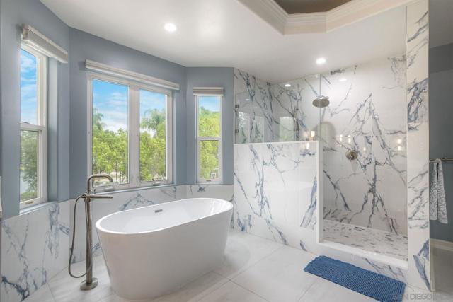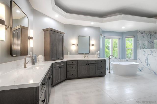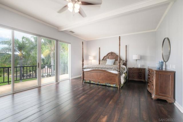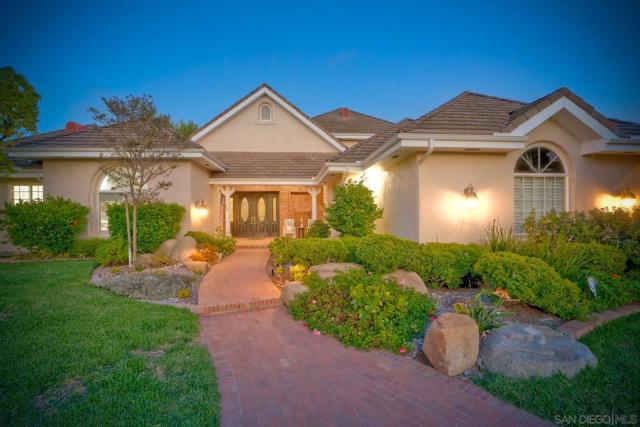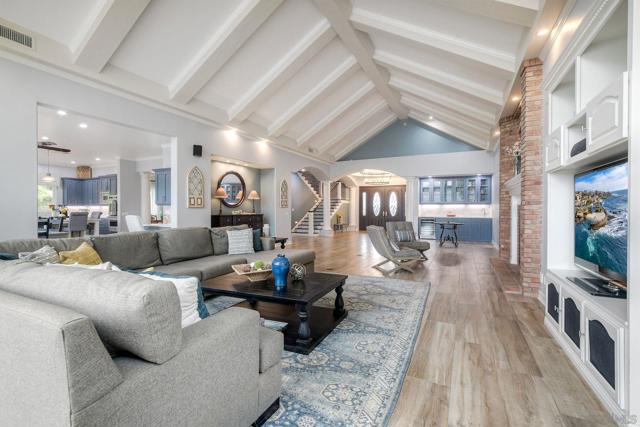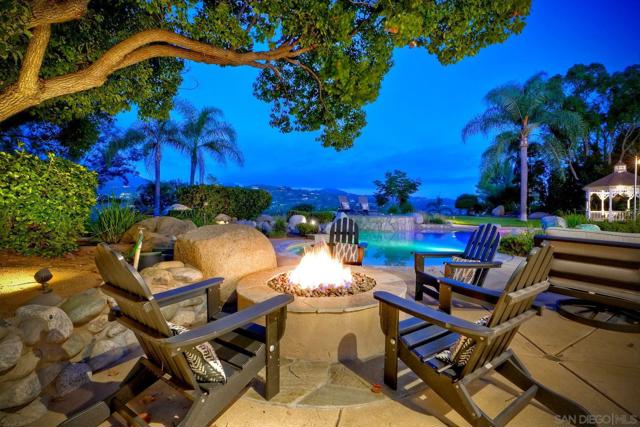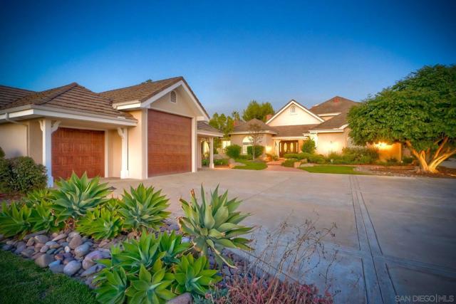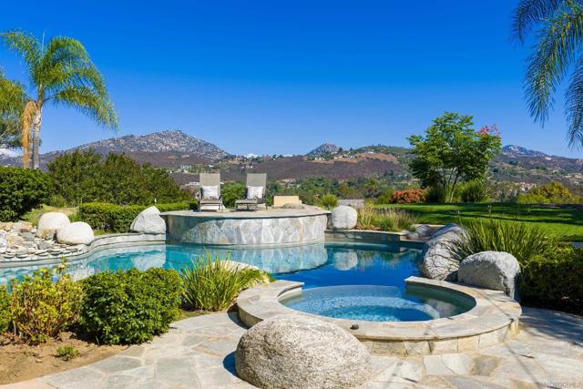 SIX Garages! One is a Large RV garage. Custom home on private 1-acre lot in Poway w/stunning views of Mt. Woodson! Beautifully updated 4,949 SqFt home offers 4bdrm, 4ba, & exceptional indoor-outdoor living. Resort-style backyard with pool/spa, firepit and built-in BBQ. Chef’s kitchen features high-end Viking appliances. Upstairs primary suite boasts newly remodeled bathroom, walk-in closet, & private balcony. Huge bonus: oversized 3 bay, detached RV garage fits a 34’ motorhome PLUS attached 3-car garage. Owned solar No HOA or Mello Roos. PUSD Spectacular custom home on a private 1-acre lot in Poway with breathtaking Mt. Woodson views! This beautifully updated 4,949 SqFt residence features 4 beds, 4 baths, and seamless indoor-outdoor living. The resort-style backyard includes a pool/spa, enlarged firepit, built-in BBQ, and drought-tolerant landscaping. Inside, enjoy a chef’s kitchen with Viking appliances, expansive great room with panoramic windows, and a luxurious upstairs primary suite with remodeled bath, walk-in closet, and private balcony. Thoughtful upgrades include full copper repipe, new furnace, tankless water heater, updated fascia, and more. Additional highlights: central vacuum, solid wood doors, remote blinds, abundant storage, and owned solar. RV enthusiasts will love the oversized detached garage—fits 34’ motorhome, boat, and toys—plus an attached 3-car garage. All within the award-winning Poway Unified School District. A rare, turnkey retreat—this one has it all!