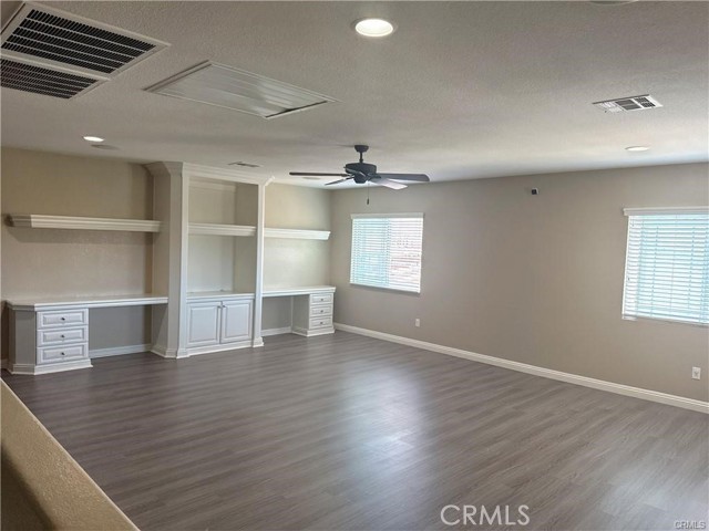 Step into comfort, style, and spacious living with this beautifully maintained 5-bedroom, 3-bathroom former model home, offering over 3,400 sq ft of living space. Located on a quiet cul-de-sac in the picturesque McSweeney Farms neighborhood, this two-story home was built in 2006 and showcases thoughtful upgrades and inviting design throughout. The heart of the home is the gourmet kitchen, complete with granite countertops, black appliances, a center island, built-in desk, generous cabinetry, and a walk-in pantry—ideal for both everyday living and entertaining. Enjoy open-concept living with formal living and dining areas, a cozy family room with a fireplace, and custom built-ins that add warmth and character. Upstairs, you’ll find generously sized bedrooms, including a luxurious primary suite with a spacious en-suite bathroom and walk-in closet. Additional highlights include recessed lighting, ceiling fans, tile and plush carpet flooring, and soft, neutral paint tones throughout. This home offers central A/C, ample storage, and curb appeal in a family-friendly community with parks, trails, and nearby amenities. Don’t miss your chance to own this turn-key gem in one of Hemet’s most sought-after neighborhoods.