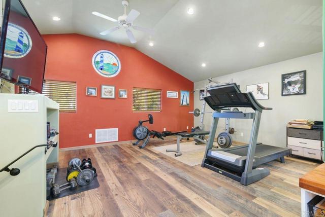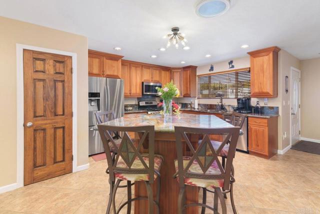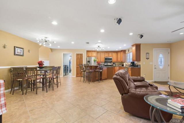 A Steal of a Deal! Make it Yours!! Range priced $1,125,000–$1,160,000. Over $100K Below Recent Appraisal! Solar-Powered, ADU or Group Home Potential, and Move-In Ready! Expanded and remodeled in 2007, this home blends comfort, functionality, and resort-style outdoor living. The front yard features native landscaping and a private putting green, while the backyard oasis offers lush tropical plants, a rock spa with waterfall, gas firepit, and an entertainer’s outdoor kitchen with grill, sink, fridge, bar seating for 10, and dining for 6- perfect for game day or movie night. Inside, enjoy an open-concept layout with an upgraded kitchen (Van Gogh granite, two-level island, walk-in pantry, and stainless steel appliances), spacious living and family rooms, a full master suite with walk-in closet and custom bath, two large bedrooms, guest bath, and laundry room leading to the garage with workshop/storage. Upstairs, a great room with two open flex spaces, mountain views, a fourth bedroom, and full bath offers the ideal setup for a studio, guest suite, office, gym, or additional bedrooms. Create an ADU with a separate entrance! Smart upgrades include dual-leased solar systems, EV charging, dual-zone HVAC, tinted windows, water purifier, and surround sound. Located in the award-winning Poway School District, close to top dining and shopping. More than a home- it’s a lifestyle. Looking for a Bargain? Let’s Get the Ball Rolling!!