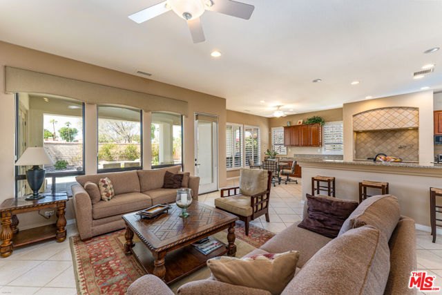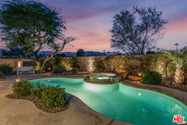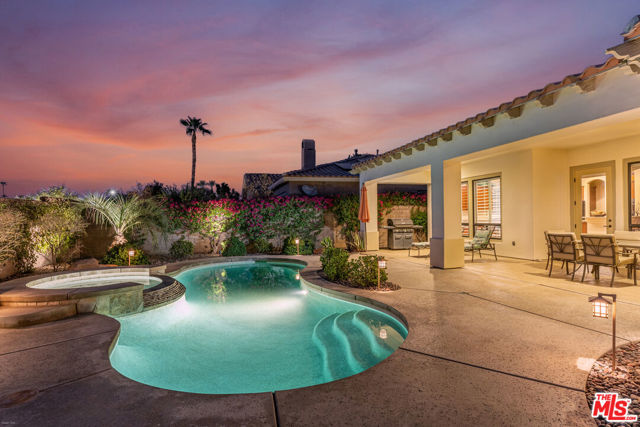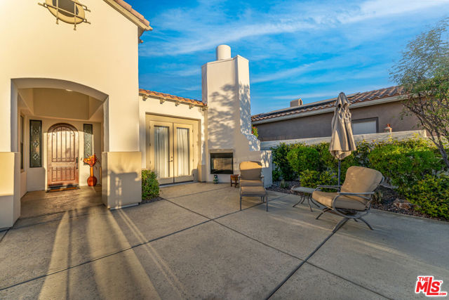 VENEZIA--Sparkling Condition, 4 Bdrm Mediterranean Contemporary, including Private Casita, Brilliant Views West to Palm Springs Mountains, High Quality Finishes, Crown Moldings, Plantation Shutters, Spacious Open Floor Plan, High 10' Ceilings, Formal Dining Room, French Drs. open to Gated Courtyard w/Fireplace. Chef's Kitchen with Center Island, plus 5 person Granite Counter Bar & Breakfast Area w/custom built-in cabinets. Sunlit Spacious Family/Living Room with Gas Fireplace, plus adjacent Office/Library w/Custom Wood Shelves. L-shaped Primary Suite wraps around to main bath & dressing area with walk-In Closet. French Drs open to large covered rear Terrace Dining area and Pool + Spa/Waterfall. Exclusive Gated Venezia Development minutes from Bistros, shopping on El Paseo in Palm Desert. This is an exceptionally sharp single owner residence that shows as 'New'. (Furnished/Negotiable)
