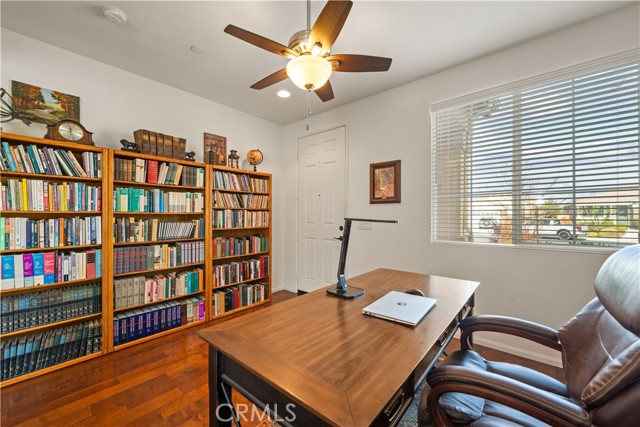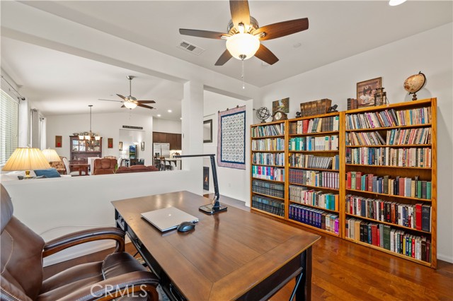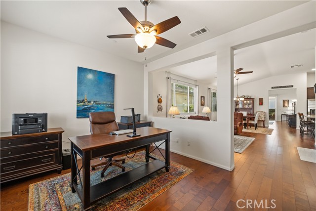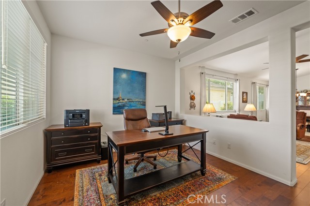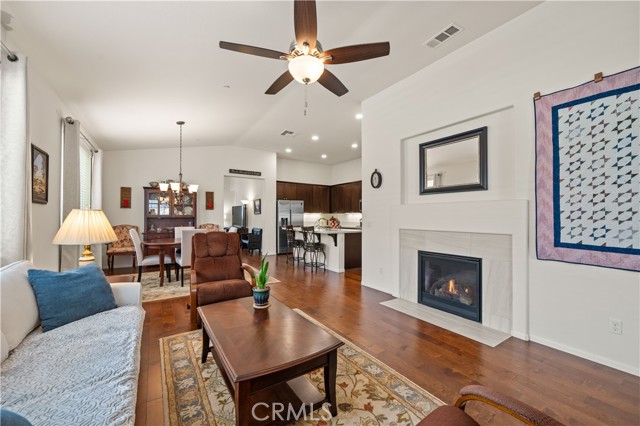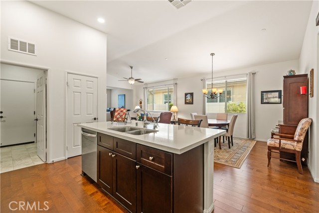Discover the perfect blend of comfort and elegance in this stunning home, nestled in the desirable 55+ gated community of Orchid. Tucked away on a peaceful cul-de-sac, this property offers a serene, low-maintenance lifestyle that’s sure to impress. Step inside to a welcoming formal dining area and a spacious living room with a cozy fireplace, creating the perfect backdrop for gatherings or quiet evenings at home. The gourmet kitchen is a true centerpiece, featuring quartz countertops, stainless steel appliances, upgraded cabinetry, a walk-in pantry, and a generous island overlooking the expansive great room. For added convenience and peace of mind, the home is equipped with a whole house soft water system and a reverse osmosis unit under the kitchen sink, delivering clean, high-quality water throughout. The family room, located just off the primary bedroom, offers seamless access to the private backyard, where an Alumawood patio cover with ceiling fans provides year-round comfort for outdoor relaxation. Retreat to the luxurious primary suite, thoughtfully designed with dual sinks, a walk-in shower, and a spacious walk-in closet. Additional highlights include a conveniently located laundry area inside the two-car garage, as well as ample guest parking on the street. The community offers an abundance of amenities, including a sparkling pool, jacuzzi, clubhouse, and tennis courts, all just across the street from a larger park. And with Menifee’s best shopping, dining, and entertainment only minutes away, this home truly has it all. Don’t miss your chance to experience the charm of Rim Creek — schedule your private tour today!