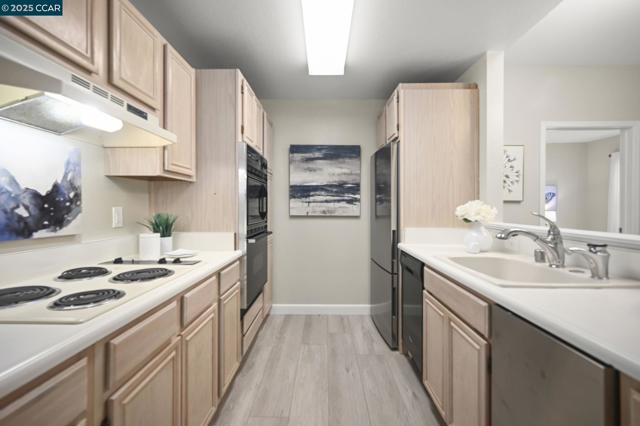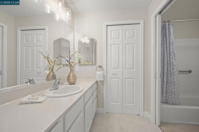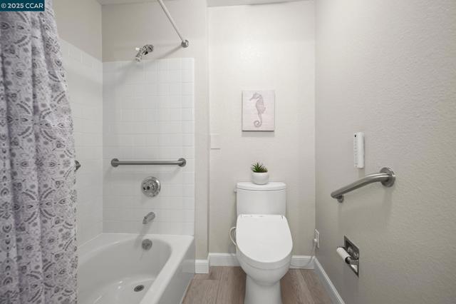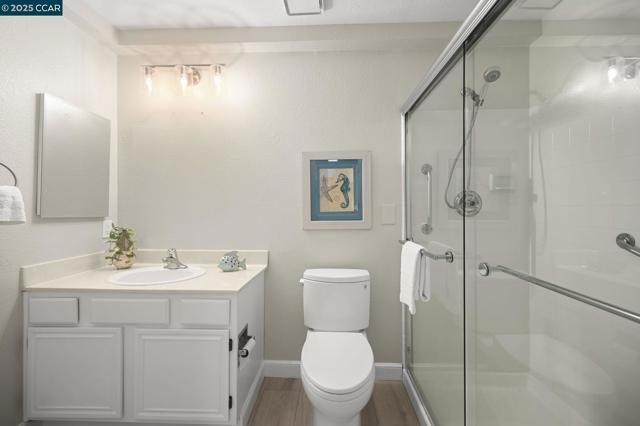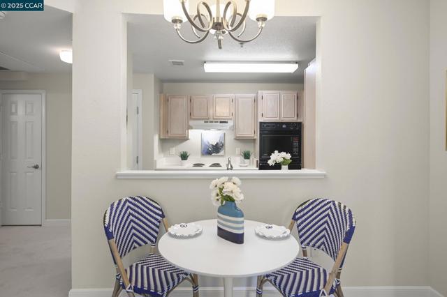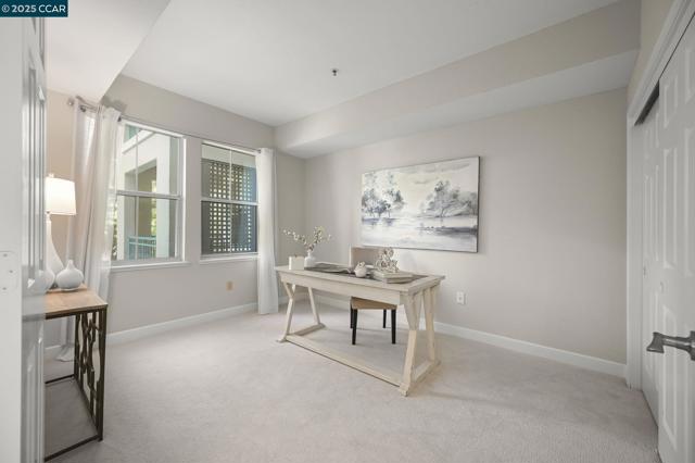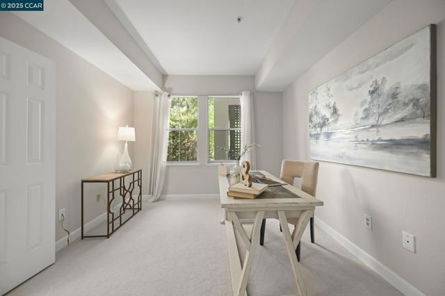 Beautiful 2-bedroom, 2-bathroom condo in The Waterford, a 55+ independent active senior living community in Rossmoor. Overlooking trees and facing away from the parking lot, this bright second-floor unit features an open kitchen that flows into the dining area and living room with sliding glass doors leading to a lovely deck. The primary suite offers a separate vanity area and an additional closet. The second bathroom includes a stall shower and in-unit washer and dryer. Elevator access allows for a no-step entry. Additional storage is conveniently located just one door down the hall. Carpet was replaced and the unit was freshly painted the week of September 22, 2025. HOA dues include water, trash, recycling, Comcast basic cable, and internet. Residents enjoy weekly housekeeping, one meal per day, and access to all activities and amenities. Community bus service provides transportation to nearby shopping areas and BART. Security and front-gate monitoring are also included.