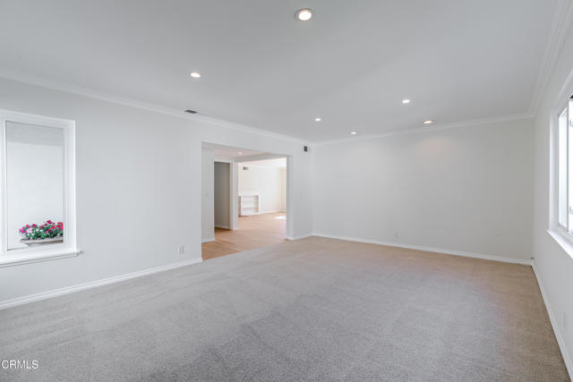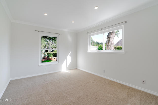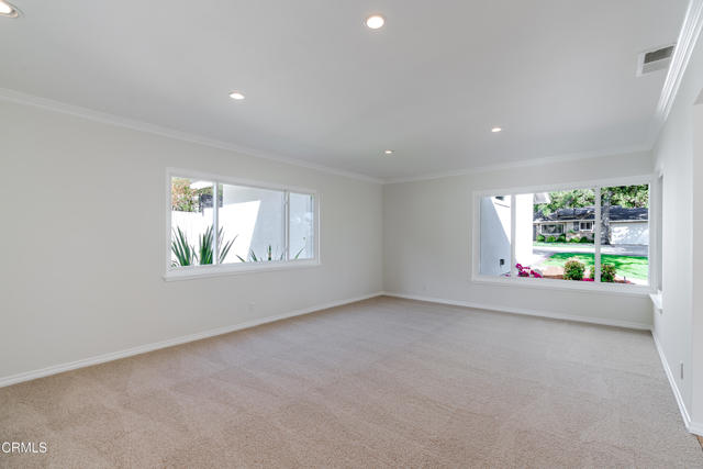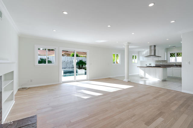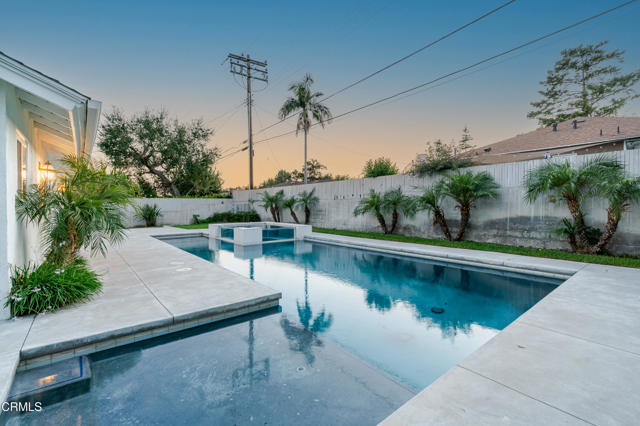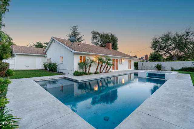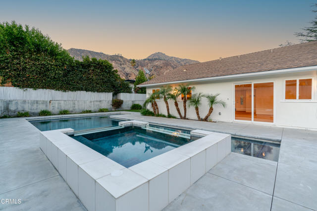 Located on a tree lined street in the Fox Ridge Estates neighborhood of Pasadena, this charming Ranch style home awaits. A large oak tree in the front yard greets you as you approach the property, creating an inviting setting to come home to. A gracious entry welcomes you through the front door where lots of natural light, large windows and crown moldings can be found throughout the home. The spacious living room is a great place to relax and flows to the family room with bookshelves and fireplace and an open concept eat-in kitchen. A center island with plenty of cabinet space can be found in the kitchen. There is a sliding glass door from the family room that leads to the backyard, ideal for entertaining. The primary bedroom suite has an attached bathroom, large closets and access to the backyard through a sliding glass door. Two additional bedrooms have ample sized closets and share a hallway bathroom. Backyard features include a large patio space, multiple grassy areas, a beautiful pool and spa with views to the mountains. An attached 2-car garage completes the property and there is additional space to park in the driveway. The home has recently been painted and new carpet and wireless HVAC system was installed in September.