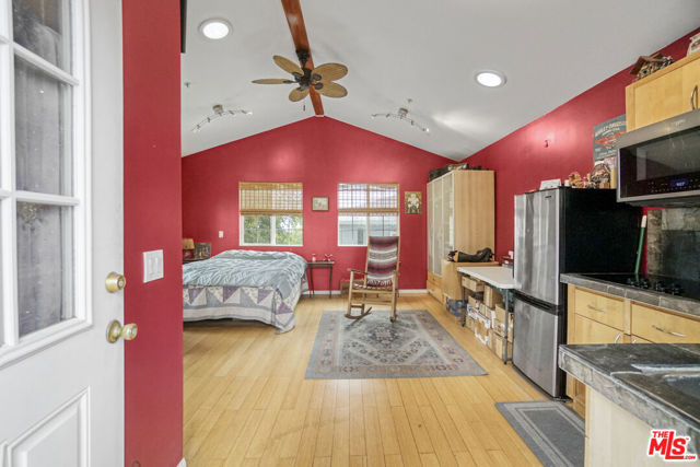 Tucked away in the highly desirable Woodland Hills South, within the private and picturesque Venido/Maycott loop, this residence offers the rare feeling of a tranquil cabin retreat while being just moments from city conveniences. Surrounded by lush greenery and mature trees, the property exudes privacy, serenity, and timeless charm.The home welcomes you with warm architectural details, including wood-beamed ceilings and a classic brick fireplace that anchor the main living spaces with character and comfort. Large windows frame sweeping canyon and city views, bathing the interiors in natural light. The open chef's kitchen is designed for both culinary creativity and connection, seamlessly flowing into inviting living and dining areas.Step outside to a sunlit patio that invites you to savor morning coffee, host gatherings, or simply unwind while taking in the peaceful backdrop of nature. Mature landscaping enhances the grounds, creating a sense of being immersed in your own private retreat.Adding to its versatility, the property includes a fully permitted ADU with its own address, 22458, currently occupied on a month-to-month basis. This space can be delivered with the tenant in place, offering immediate rental income, or delivered vacant for use as a guesthouse, home office, or private studio.Additional highlights include a two-car garage, ample driveway parking, and a location that strikes the perfect balance between seclusion and accessibility. Just minutes from Topanga Canyon, Ventura Boulevard, and local parks, this home captures the essence of California living: peaceful, private, and endlessly inviting.A rare opportunity to own a home that feels worlds away yet right at the heart of Woodland Hills South.