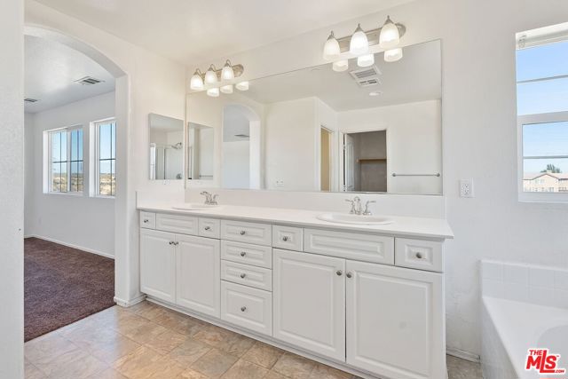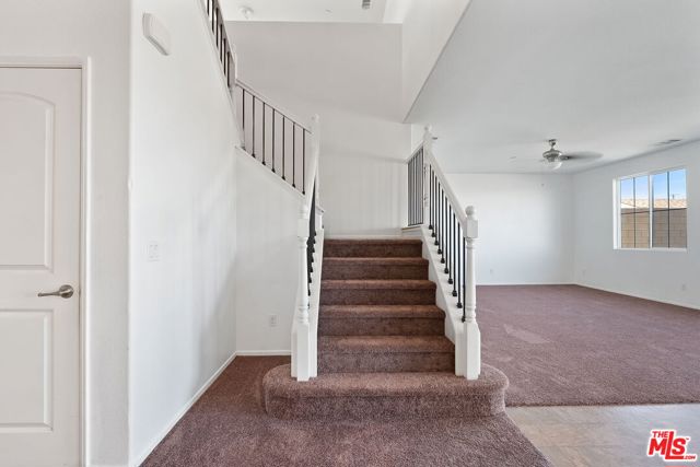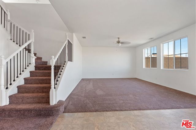 Welcome to Paseo Verde, a meticulously maintained 4-bedroom, 3-bath home showcasing drought-tolerant landscaping and exceptional pride of ownership. This residence comes with Section 1 clearance on the pest inspection, offering peace of mind for the next homeowner. Step into the spacious tandem 3-car garage with abundant storage, then enter through a convenient mudroom perfect for dropping bags and shoes. Inside, you'll find brand-new carpet and fresh paint throughout, creating a clean, move-in-ready environment in this pet-free home ideal for those seeking an allergy-friendly setting. The functional floor plan includes a downstairs bedroom and full bath, ideal for guests. The light-filled great room flows seamlessly into the open kitchen, featuring plentiful cabinetry, smooth stone countertops, and a large central island. A formal dining room, currently used as a reading nook, offers versatile space to fit your lifestyle. Upstairs, a dramatic staircase leads to a generous loft perfect for a media room, game space, or office. Two bedrooms share a dual-sink bathroom, while the expansive primary suite includes a spa-inspired bath with a walk-in shower, soaking tub, dual vanities, and walk-in closets. The upstairs laundry room adds convenience with bright natural light. Outdoors, the low-maintenance backyard offers desertscape views and access to a nearby walking trail. Additional highlights include no HOA and no solar lease. Lovingly cared for and thoughtfully updated, this home is ready to welcome its next owner.
