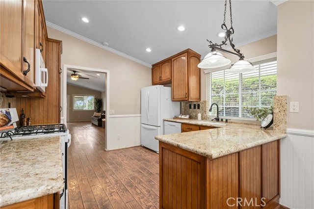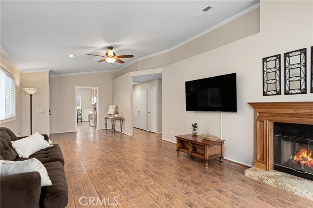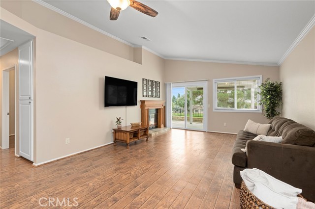 Wonderful 55+ Senior home in the Highland Springs Country Club right on the golf course! Beautifully upgraded and meticulously maintained home with the Pre-listing Home inspection/repairs completed for the buyer and appliances and the golf cart remain! Walking into the home there's a spacious living room with cozy fireplace just before the large sliding door looking out onto the golf course under your covered patio. The views are breathtaking and there's multiple entertaining areas yet virtually maintenance free! The kitchen has upgraded countertops with ample cabinets that have pull-out drawers, upgraded fixtures, wainscot moulding for beautiful detail and LED recessed lighting along with a casual breakfast nook and a larger dining room as well. The guest bedroom is spacious with golf course views and has an upgraded bathroom in the hallway. The primary bedroom has vaulted ceilings with a ceiling fan and a convenient sliding door as well as an en-suite bathroom that's been remodeled and move-in ready. This home has been meticulously cared for and is situated on a desirable street and has fresh paint on the interior and exterior trim and upgraded LVP flooring or tile throughout the home and window treatments on every window. The HOA has so many amenities including Golf, Clubhouse, Pool/Spa, Billiard and Rec Room, Cooking areas, and a gated entry for security.