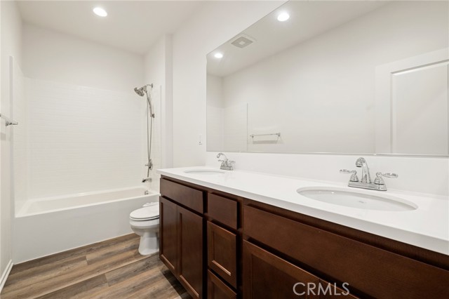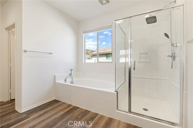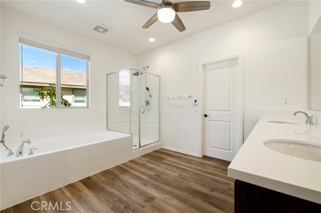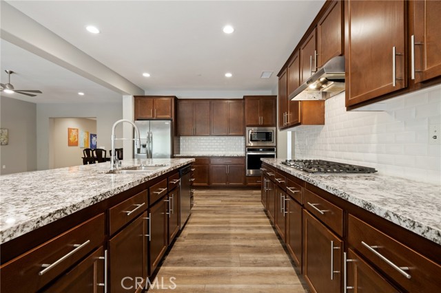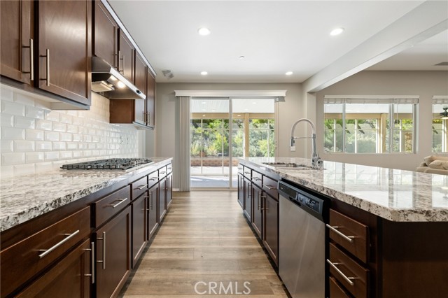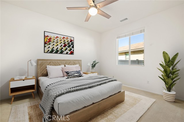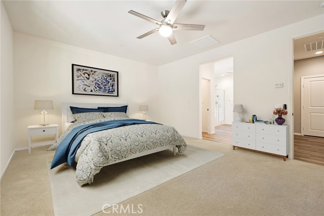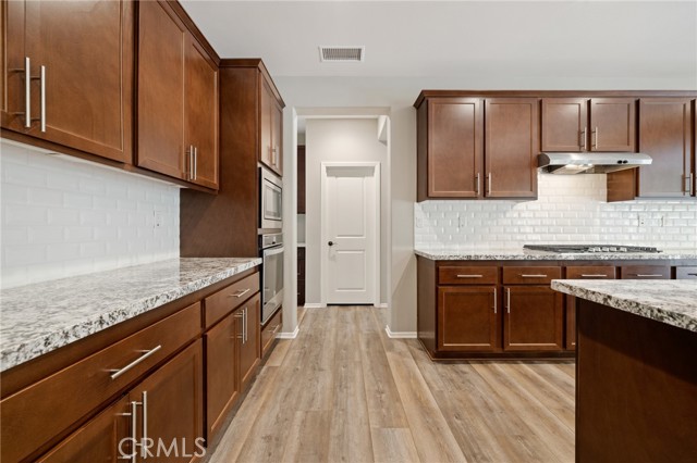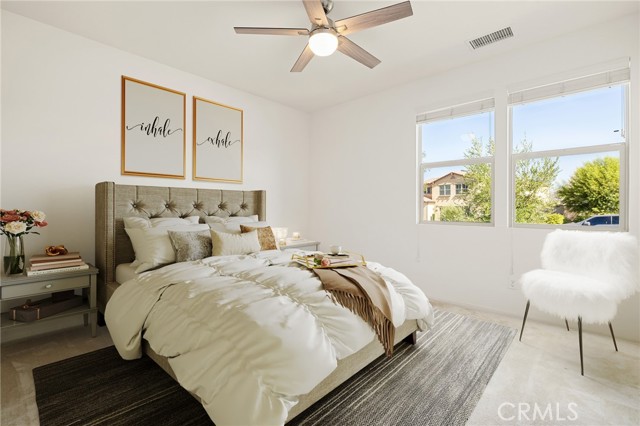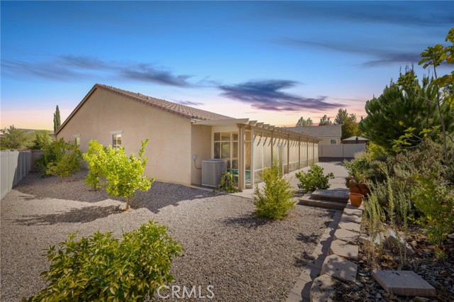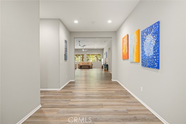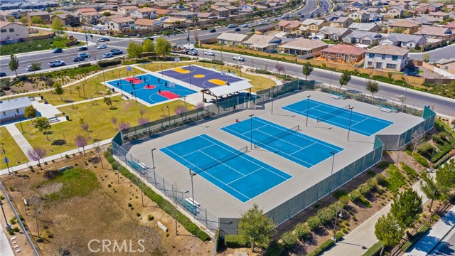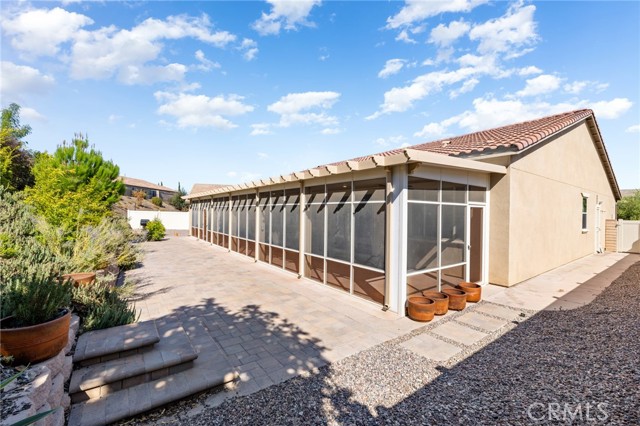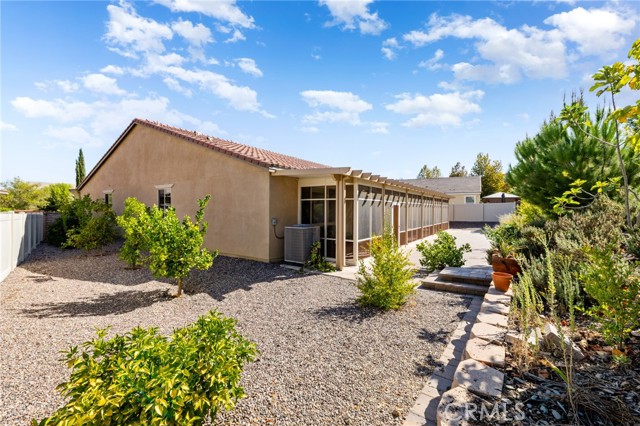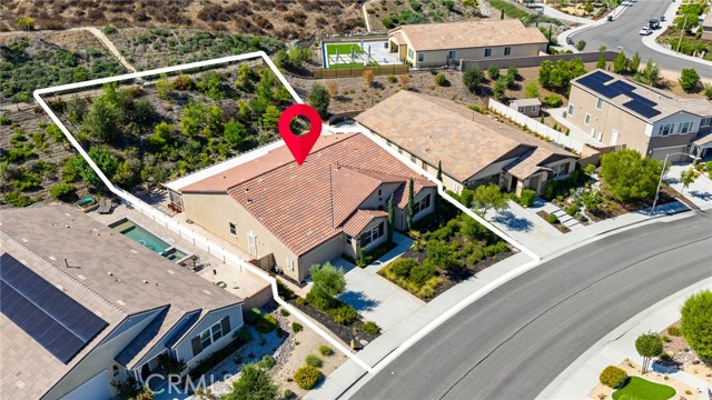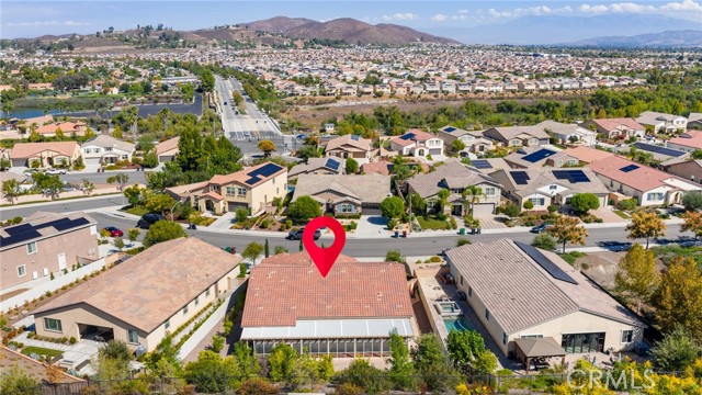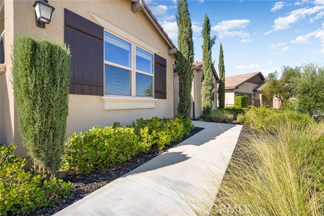 Welcome to Ponderosa Lane where dreams come true in this stunning 3100 sqft property sitting on almost a 14,000 sqft lot of land. The ranch style property features 4 bedrooms, 4 baths and a next-gen suite perfect for guests or income purposes. Located in the highly desirable gated community of Province in Audie Murphy Ranch, in Menifee, with mountain views, drought tolerant landscaping and nestled on the hillside with no rear neighbors. As you enter the home you are greeted by tall ceilings, recessed lighting, LVP floors, and a highly desirable floor plan. On the West wing of the ranch style property are two large secondary bedrooms both with walk-in closets, plush carpet, ceiling fans and tons of natural light flooding the space. The rooms share a secondary bath appointed with a dual vanity, quartz counters, and tub shower combo. Across the hall is a powder bath perfect for guests. Off the East wing of the home is the next-gen suite or Junior suite boasting a large room that can be split into a bedroom and living area or can be used as a large office or gym and offers a nook perfect for an exterior door to be built for private access. The bedroom has its own walk-in closet and attached bath featuring a single vanity and real tile walk-in shower. The amazing Great Room is appointed with large windows allowing tons of natural light to fill the entirety of the home, two ceiling fans and a massive space to decorate your dream living area. Off the Great Room is a large dining area that peers into the gourmet kitchen. The kitchen is appointed with granite counters, subway tile backsplash, stainless steel appliances, tons of storage with pull out drawers in the cabinets, and an eat up island. A flex space is the perfect office directly behind the kitchen and flows into a custom-built butler’s pantry and walk-in pantry. The large laundry room features a wash sink, the RO water filtration system and access to the 3-car tandem garage. The custom backyard boasts a $75,000 landscape design featuring an enclosed sun run patio cover with screens to allow airflow and doors to the rest of the yard which is appointed with pavers, and tons of fruit trees including Pomegranate, lemon, lime, grapefruit, avocado, and fig. The side yard is the perfect size for a pool! The community includes pools, spa, sports courts, club house, skate park, hiking and biking trails, and the award winning Taawila ES and new Kathryn Newport MS. Located between the 15 and 215 freeways!