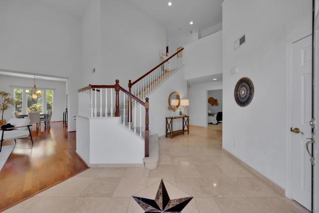 Welcome to this stunning 3,460 sq ft home, built in 2001, located at the end of a peaceful cul-de-sac, where soaring high ceilings and elegant upgrades create a grand and inviting atmosphere. This beautifully maintained residence features 5 spacious bedrooms and 4 full bathrooms, including a convenient downstairs bed and bath—ideal for guests or multi-generational living. Set on a rare, flat, and fully usable 0.47-acre lot, the property is surrounded by lush, professionally designed landscaping that offers both beauty and privacy. The open-concept layout is filled with natural light and showcases premium finishes throughout. The gourmet kitchen is a chef’s dream, featuring high-end appliances, custom cabinetry, and a large island that flows seamlessly into the family room—perfect for entertaining. Upstairs, the luxurious primary suite includes a spa-like bathroom and a generous walk-in closet, while additional bedrooms provide flexibility for family, work, or hobbies. The expansive backyard offers endless possibilities—add a pool, garden, or even an ADU. No HOA means more freedom to personalize your property. Whether you're hosting gatherings or enjoying quiet evenings under the stars, this home is a true sanctuary.