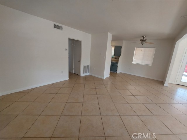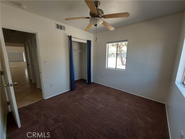 This 2 bedroom 1 bath home is located walking distance to Old Town Yucca Valley. This super cute property has a fully fenced yard and a detached 1.5 car garage. Upon entry you will notice the tile flooring and vaulted ceiling in the living room. The kitchen comes with a double sink, refrigerator, electric cooktop and built-in oven. ceiling fans throughout. The hallway is well equipped with an abundance of storage space on both sides. Both bedrooms have brand new carpet. French doors off the living space will lead you to the large covered patio in the spacious backyard.