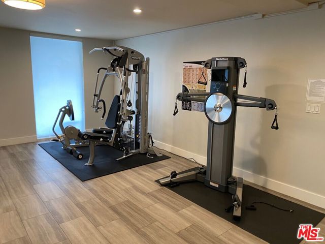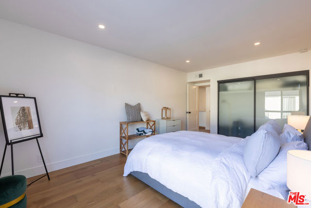 Perched on the top floor with sweeping pool views, this expansive 1,200+ square-foot residence offers the perfect blend of style and comfort. The home features elegant European white oak hardwood floors and recessed dimmable lighting throughout, creating a sophisticated yet inviting atmosphere. Every detail has been thoughtfully designed, from the custom cabinetry to the high-end finishes.The chef-inspired kitchen and wet bar are truly exceptional, showcasing floating shelves with dimmable LED lighting, stunning Spanish porcelain tile, Dolomite waterfall countertops, and a one-of-a-kind handmade Moroccan sink imported from Marrakech. Whether cooking for yourself or entertaining guests, the Viking oven, Samsung smart induction cooktop, and hand-painted Venetian plaster range hood will surely impress.The sun-filled living room invites relaxation, while the private balcony provides a serene spot to enjoy the pool and Hollywood Hills views. The bedrooms offer a peaceful retreat, complete with blackout shades and motion-sensor closet lighting. In the spa-like bathrooms, Spanish porcelain tiles set the tone for a rejuvenating experience. Building amenities include a fully-equipped gym, a sparkling pool, and 24/7 security cameras for peace of mind. Enjoy the convenience of two assigned tandem parking spaces. Additionally, the monthly HOA fees include earthquake insurance, water, and maintenance of building and grounds. Located just moments from the Sunset Strip, you'll have quick access to everything West Hollywood has to offer!