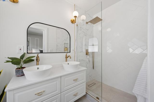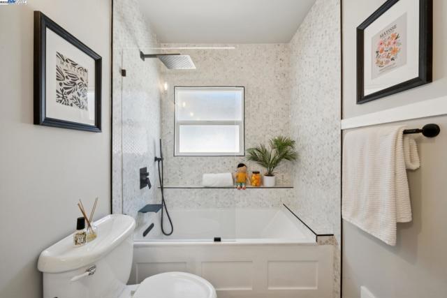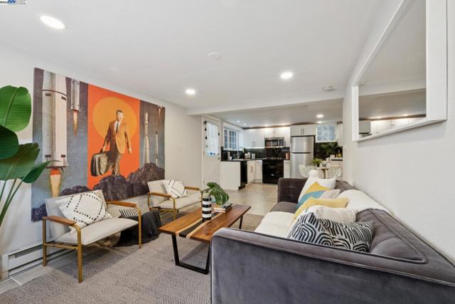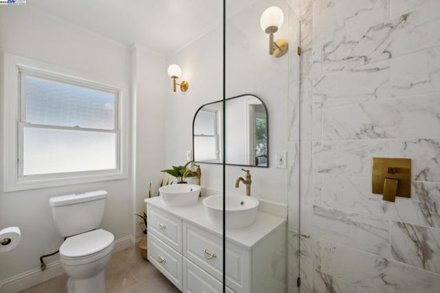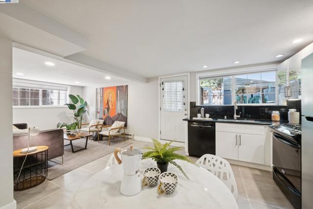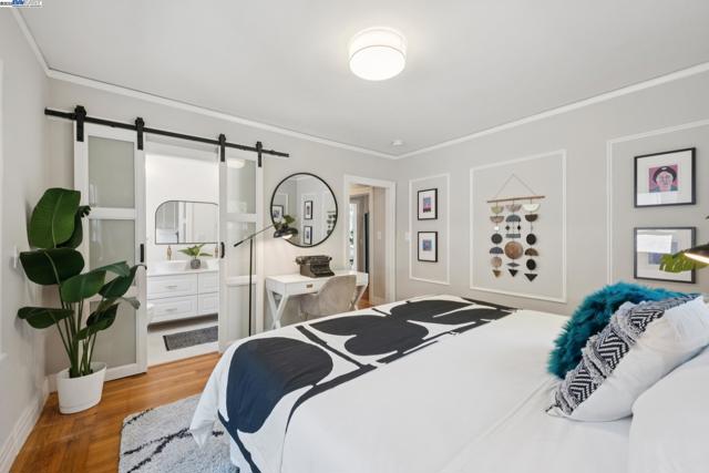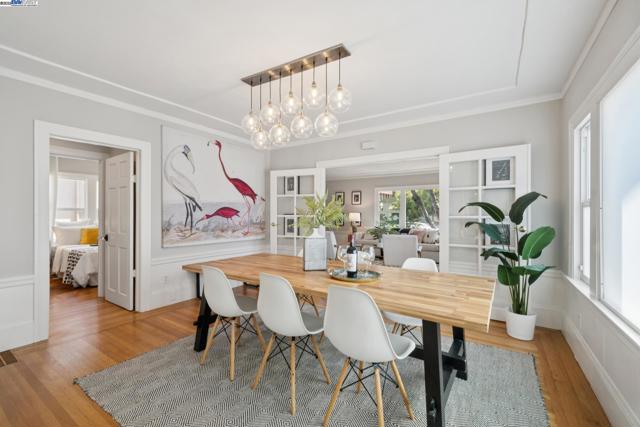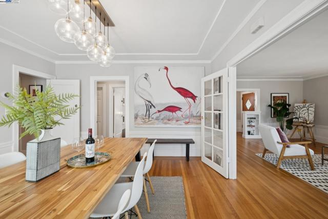 Prime Rockridge opportunity! This fantastic 2014 SQFT property features a stylishly renovated 2BD/2BA main home (1353 SQFT) plus a separate 1BD/1BA (661 SQFT) apartment perfect for income or guests. The living room, with its large picture window and classic fireplace, flows through French doors into a formal dining room, creating a seamless space for entertaining that is elevated by decorative mouldings, inset tray ceiling, and hardwood floors throughout. An updated kitchen connects to the dining room for easy hosting, while the additional breakfast nook is also an ideal home office with its sunny windows. The home's unique floorplan offers two private bedroom suites, each with its own newly remodeled modern full bathrooms, providing wonderful privacy. The separate downstairs apartment is a full-service unit with its own kitchen, laundry, and full bath. A deck and large patio create an ideal space for indoor/outdoor living, and the deep backyard is framed by lush mature landscaping for privacy, including 6 fruiting trees. The long driveway provides parking for 2+ cars. Enjoy a superb location near the world class amenities of College Avenue and Telegraph Avenue, Temescal farmers' market right across the street, and an easy commute via Rockridge BART or the Transbay bus nearby.