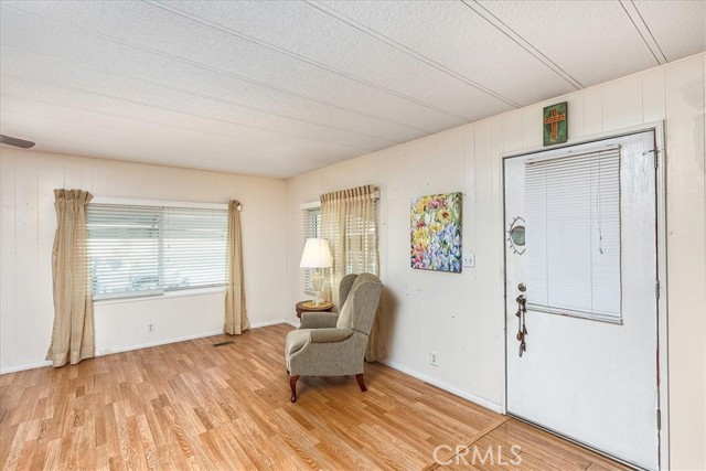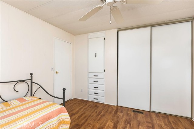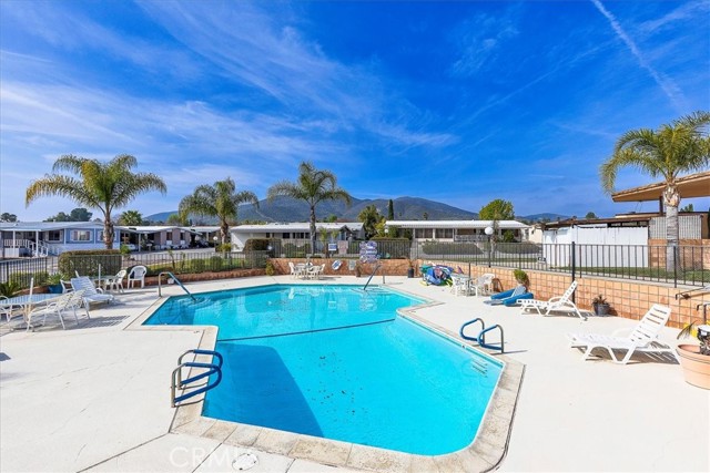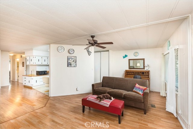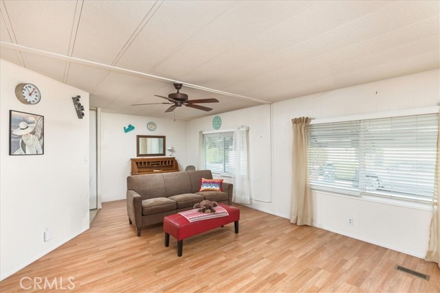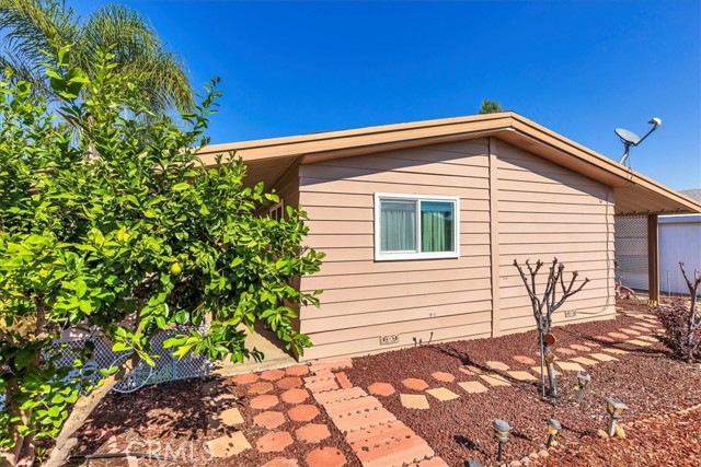 55+ Hillside Mobile Home Estates - Gated community - CLEAN/TURNKEY - 2 Bedrooms/ 2 Baths - Skyline Custom Golden Model manufactured home with approximately 1,344 square feet of interior living space. Features include an open floor plan with large living/dining great room with wood flooring. Kitchen with five burner gas stove top with exhaust vent hood - dishwasher - disposal, vinyl flooring (the countertop microwave & refrigerator can be included). Lots of cabinet & counter space with breakfast bar. Primary bedroom with wood floors - ceiling fan - walk-in closet. Primary bath with walk-in shower - single sink vanity. Guest bedroom with wood floors - wardrobe closet & built in dresser. Guest bath with shower in tub - single sink vanity. Indoor laundry room (with washer & dryer that can be included). Additional features include: Neutral interior paint through out, window blinds, ceiling fans, central AC & Heat. Covered front porch with privacy lattice, low maintenance yard, fruit tree. Detached storage shed within the covered carport & driveway. Community amenities include - Club House -Community Pool - Fitness Area - Billiards/Game Room - Sports Court - BBQ & Picnic Area. Conveniently located close to freeways, shopping, restaurants & more.