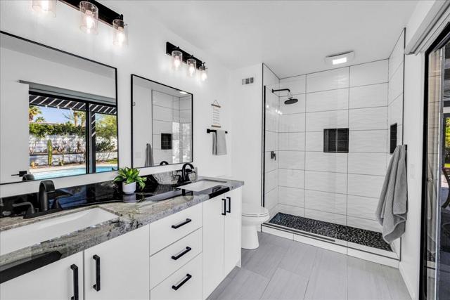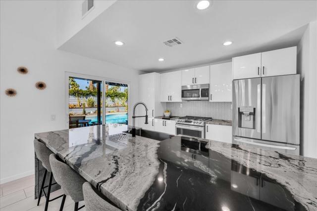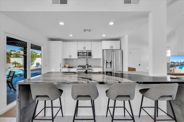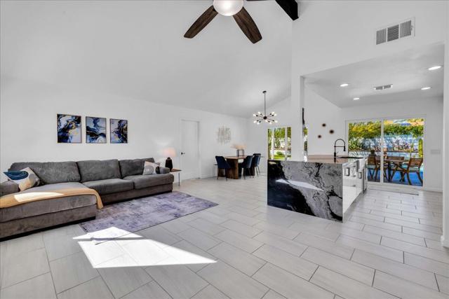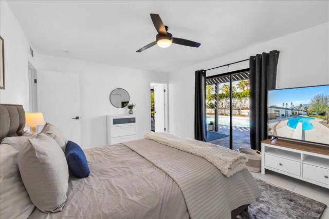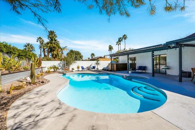 Welcome to your Palm Springs dream home! This stunningly remodeled 3 bedroom, 2 bath residence offers 1,452 sq. ft. of beautifully designed living space, all situated on an expansive lot of over 15,000 sq. ft. Located just minutes from the heart of downtown Palm Springs, you'll enjoy the perfect blend of privacy and convenience with world-class dining, shopping, golf, and entertainment right at your fingertips.From the moment you step inside, you are greeted with an inviting open floor plan, soaring ceilings, and an abundance of natural light that creates a warm and airy atmosphere. The living and dining areas flow seamlessly into the chef's kitchen, making this home ideal for both relaxing and entertaining. The kitchen has been fully reimagined with all-new sleek modern cabinetry, high-end stainless steel appliances, recessed lighting, and elegant finishes. Stunning quartz countertops and a spacious layout make it the perfect place to gather with friends or prepare gourmet meals. Sliding doors from the dining area open directly to the backyard, enhancing the indoor-outdoor lifestyle Palm Springs is known for.Both bathrooms have been completely remodeled to match the elegance of the kitchen, featuring new cabinetry, quartz countertops, and designer touches throughout. Every bedroom is thoughtfully appointed with ceiling fans and plenty of natural light, while recessed (canned) lighting runs throughout the home, creating a modern and bright feel. The home also offers an air-conditioned two-car garage, a rare feature that adds comfort and convenience year-round.Step outside into your private backyard oasisa''meticulously landscaped and designed for ultimate relaxation and entertaining. A large sparkling pool and spa invite you to cool off or unwind, while the soothing water feature adds a tranquil touch. A covered patio provides shade during the warm desert days, and the built-in misting system keeps you comfortable even in the peak of summer. There is ample space for lounging in the sun, entertaining guests, or simply enjoying the serene mountain views.This home truly embodies the essence of desert luxury living, with every detail carefully curated to provide comfort, elegance, and style.Note : Existing Lease is extended to June 30, 2067.