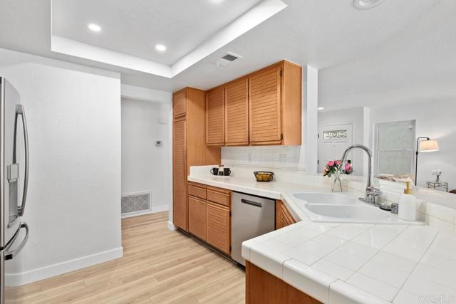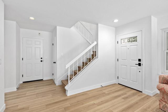 Rarely available Tierrasanta Norte home on single-lined street. No neighbors in front of you, just beautiful canyon views! This home has been exceptionally renovated with new interior paint in crisp white, as well as new luxury vinyl flooring throughout the living areas, kitchen, stairwell, and bedrooms- giving the home an elegant modern appeal. Contemporary matte-black hardware & light fixtures put this home in a league of its own! Brand-new stainless-steel GE appliances, energy efficient windows, tankless water heater, recessed lighting, and ceiling fans round out the list of stunning upgrades. The backyard offers a tropical oasis with lush hibiscus trees and overlooks a park-like greenbelt. This one is a must see! Additional photos coming soon.