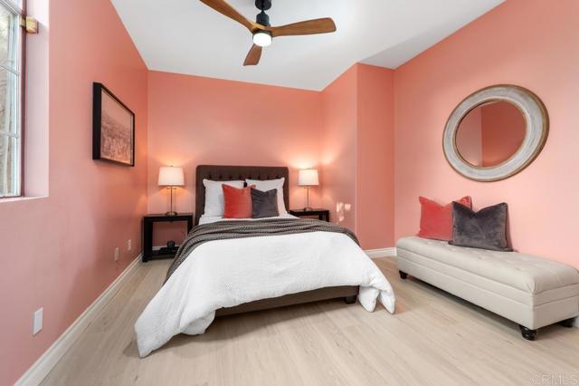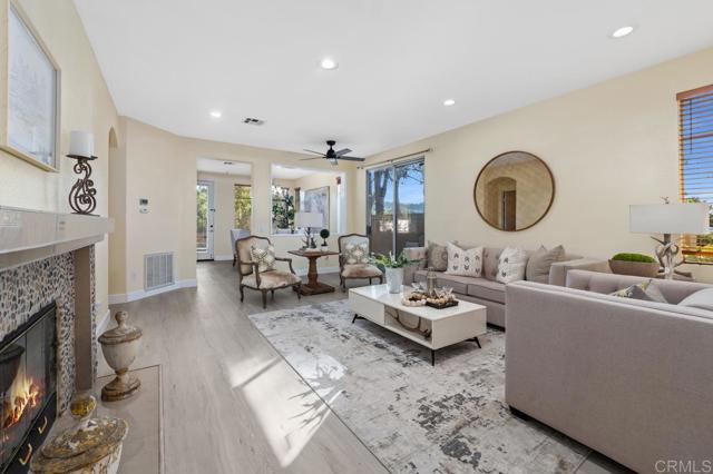 Welcome to your dream home in Sabre Terrace, a sought after community in Sabre Springs! This corner/end unit townhome offers 3 bedrooms, 2.5 baths, and approximately 1,646 sq ft of living space, blending comfort and style. Step inside to discover an open and bright floor plan which features abundant natural light, a spacious living room with fireplace and private balcony—perfect for morning coffee or evening relaxation. The home has luxury vinyl plank flooring throughout, and a well-appointed kitchen featuring stainless appliances and granite countertops. The dining and living areas flow seamlessly, offering room for both celebration and quiet evenings. Upstairs, the luxurious primary suite offers stunning views of the Penasquitos Creek Valley, a generous walk-in closet and an en suite bath; two additional bedrooms and a full bath complete the upper level. All bathrooms in the home have been updated. Attached 2-car garage with direct access and in-unit laundry add everyday ease. Enjoy outdoor living! The private patio/yard (no unit below) is ideal for entertaining, gardening, or simply unwinding. The corner location yields added privacy and light. Residents love the resort-style community amenities: pool, spa, fitness room, lush landscaping, and scenic walking trails. HOA covers water, trash, exterior of home and insurance. Brilliantly positioned for convenience: near shopping, dining, freeway access, and within the Poway Unified School District. Don’t miss this rare opportunity to own a quiet, bright, and beautifully located home in one of 92128’s premier complexes.