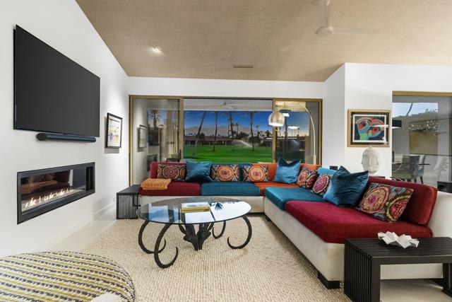 COUNTRY CLUB MODERN! This remodeled designer home is the essence of sophistication in Desert Horizons Country Club. Sleek architectural lines & abundant natural light showcase the quality design of this 3 BD / 3.5 BA- 2,910 sf home that has been redesigned throughout! Owned Solar and Offered Furnished (art excluded)! Enjoy seamless indoor-outdoor living with expansive windows framing the panoramic west mountain & golf course views. Enter through the private, enclosed courtyard to be greeted by a 12' art installation, ''The Aquarium,'' that showcases sparkling tropical glass fish in a light-filled atrium. This home is made for entertaining many and yet is perfect for two! Open-plan living area encompasses a sunken wet bar, living room w/fireplace, dining room & fabulous kitchen. Key features are: Owned Solar, imported stone finishes, new 2024 Lennox HVAC, cook's kitchen with Dacor refrigeration & 6-burner gas stove, Fleetwood sliding doors, power solar awnings & power solar shades, and more! See attached list detailing the extensive upgrades! Stunning street presence - Artificial turf, new lighting, custom gate & mature fruit trees. Located at the end of quiet cul-de-sac, with ideal proximity to community pool & dog walk areas. All homeowners are required to be Social Members (included in HOA fees). Desert Horizons CC has been renovated to include a gorgeous Clubhouse with bar & dining, state of the art fitness facility, green renovations on the Ted Robinson Sr designed course, new courts complex and more!