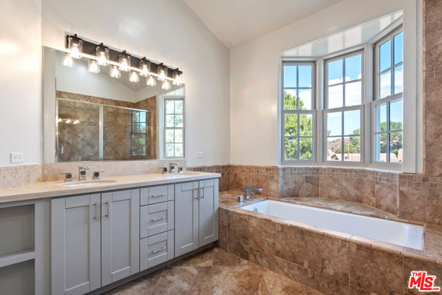 Presenting this beautiful and spacious Calabasas Highlands custom build home with nature views. Nestled in the hills of Calabasas, this 4 bed 5 bath home features a formal entry with vaulted ceilings, wood floors and recessed lighting throughout. The kitchen features granite slab counter-tops and stainless steel appliances. A breakfast bar opens to the family room with a fireplace. Each bedroom has en-suite bathrooms, picturesque windows, and a balcony or patio space. The primary suite is expansive with vaulted ceilings, fireplace, massive walk-in closet, over-sized shower and Jacuzzi tub & large balcony with views. Las Virgenes School District.