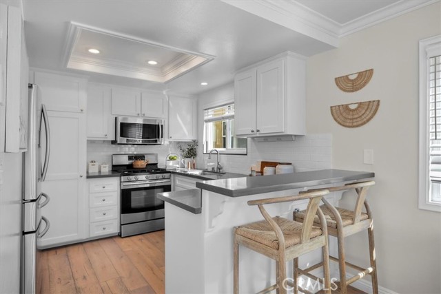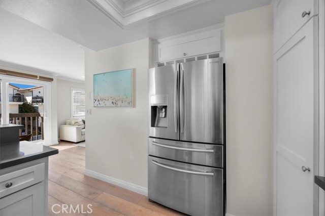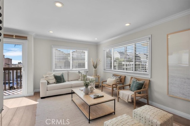 Experience the ultimate beachside lifestyle in this beautifully updated Hermosa Beach condo. Featuring two bedrooms, two bathrooms, and 953 square feet of living space, this front-facing unit captures the essence of coastal living with its private balcony and ocean views. Just one block from the sand and Hermosa Beach Pier, this home places you steps from the city’s vibrant dining, shopping, and nightlife. Inside, the freshly painted interior is filled with natural light and designed with both style and livability in mind. Ocean views can be enjoyed from the kitchen, dining, and living areas, where sliding glass doors open to the balcony, welcoming refreshing coastal breezes. A cozy gas fireplace adds warmth and character, while the kitchen is fully equipped with stainless steel appliances, barstool seating, and a natural connection to the dining area, making it perfect for entertaining. Both bedrooms are tucked privately toward the back, each offering spacious walk-in closets for exceptional storage. The primary suite features an en-suite bath enhanced by a ceiling heater for year-round comfort, while the second bedroom is served by a nearby hallway bath. Electric wall heating is provided in each bedroom, while wide plank wood flooring and recessed lighting throughout elevate the home’s modern appeal. Additional amenities include abundant hallway cabinet storage space, a shared rooftop deck with sweeping ocean views, and a convenient laundry room shared with just one other unit. The private one-car garage provides room for your vehicle along with space for surfboards, bikes, and beach gear, while permitted driveway parking adds a second dedicated spot. The city also allows you to apply for permits to park up to five cars, providing exceptional flexibility for residents and guests. Balancing location, style, and convenience, this Hermosa Beach condo is ideal as a primary residence, vacation retreat, or investment. With ocean views, abundant natural light, and a premier location steps from the pier and the beach, it embodies the best of coastal California living.