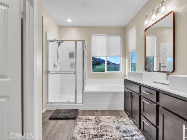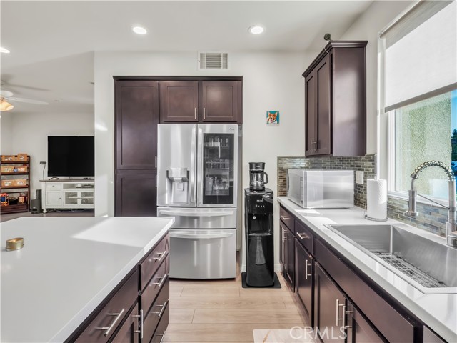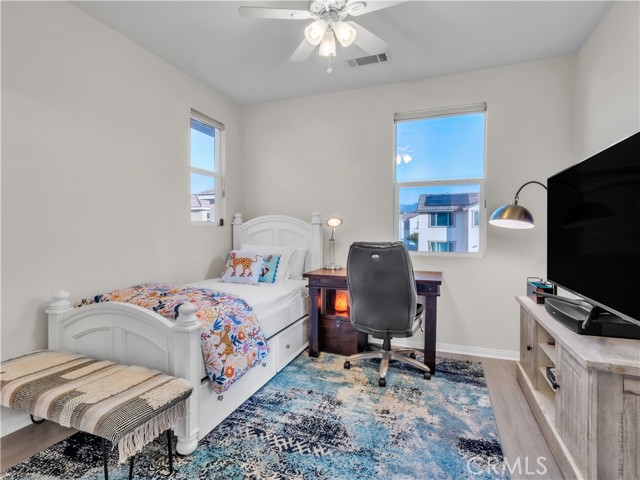Welcome to one of the most desirable communities in Santa Clarita — the gated Trestles Community. Situated in one of the best locations within the neighborhood, this home is truly a rare find. Featuring 3 bedrooms, 2.5 bathrooms, laminate wood flooring, and energy-efficient solar, this property has it all. The kitchen boasts quartz countertops, a center island, stainless steel appliances, and opens to a spacious dining and family room — perfect for entertaining. Upstairs, you'll find three generously sized bedrooms, including a primary suite with a large en-suite bathroom and walk-in closet. The two additional bedrooms share a convenient Jack-and-Jill bathroom, and the laundry room is also located upstairs for added ease. Enjoy a private backyard with serene hillside views and no rear neighbors — ideal for barbecues, family gatherings, or simply unwinding at sunset. Located at the end of a cul-de-sac, the home offers additional parking and easy access to the attached two-car garage. Centrally located near award-winning schools, shopping centers, grocery stores, restaurants, and just minutes from the 14 freeway. No Mello-Roos and low HOA! Don’t miss your chance — contact us today to schedule a showing.